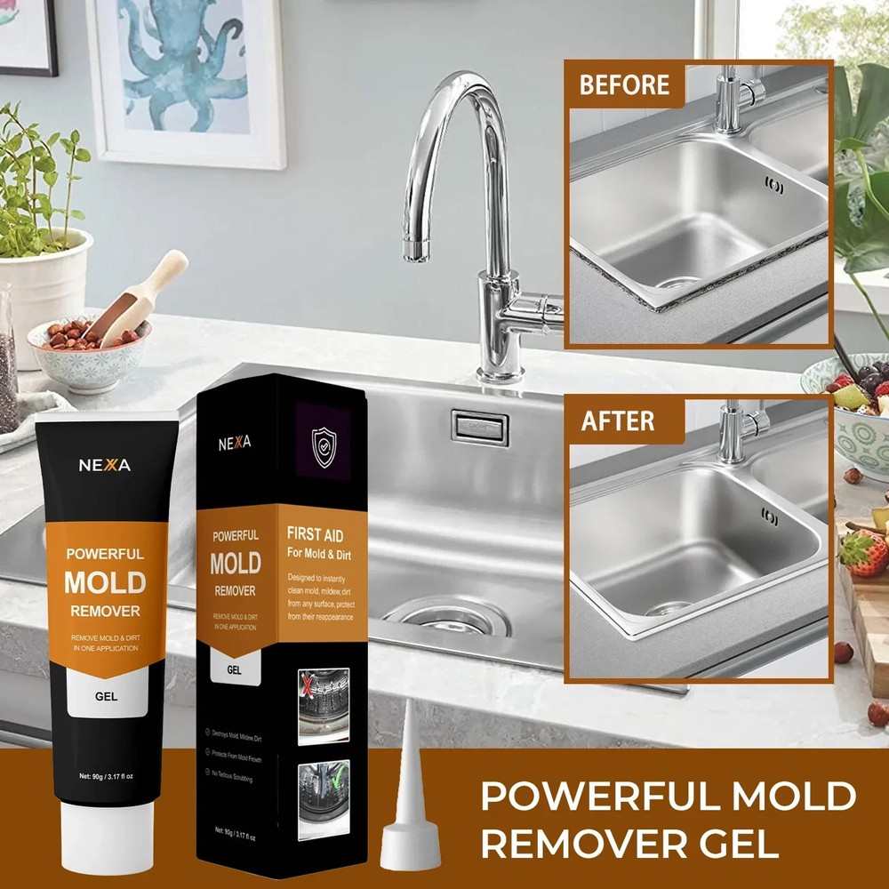 Nexa Mold Remover Gel is a thick, no-drip cleaning solution designed to help lift and clean away stubborn mold stains. Its gel formula clings to surfaces, making it especially effective for vertical and hard-to-reach areas. ✅ Deep Cleaning Action – Helps remove mold stains from tiles, grout, silicone joints, and more. ✅ Thick Gel Formula – No drips or mess; stays in place for targeted application. ✅ Fast-Acting – Noticeable stain reduction in just a few hours with less scrubbing. ✅ Multi-Surface Use – Great for sink edges, tile gaps, washer gaskets, fridge seals, windows, and walls. ✅ Easy to Apply – Simply apply, let sit, and wipe clean. Nexa Gel makes it simple to keep your bathroom, kitchen, and household surfaces looking fresh and clean. Suggested Uses Bathroom tiles & grout Silicone caulking & joints Window frames & seals Washer and fridge gaskets Walls & other household surfaces