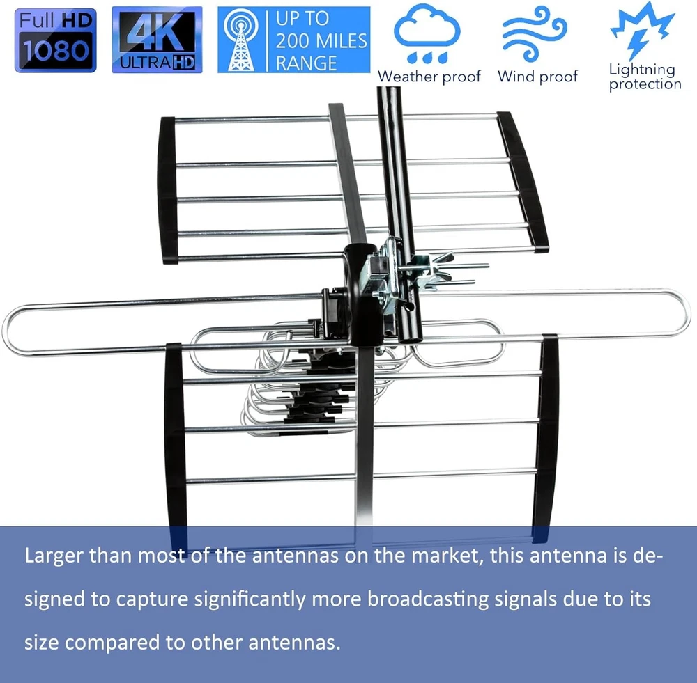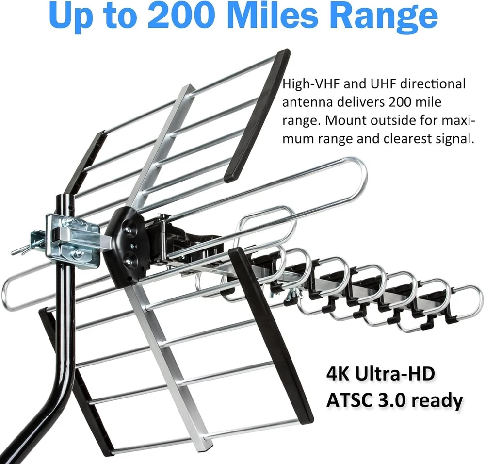 Next-Gen 4K HDTV Antenna with 40ft Coax Cable & Splitter for Multi-TV Support ‹ › ‹ › ‹ › ‹ › ‹ › ‹ › ‹ › ‹ › ‹ › Next-Gen 4K HDTV Antenna Upgrade your viewing experience with our state-of-the-art outdoor antenna, perfect for cutting the cord and accessing crystal-clear 1080p and 4K reception for FREE! Key Features: 2024 UPDATED YAGI OUTDOOR ANTENNA - Reception up to 200 miles from TV transmitters for stunning picture quality. Supports both VHF and UHF signals for excellent broadcasting range. NEXT-GEN TECHNOLOGY: 4K ULTRA HD and ATSC 3.0 READY for future-proof entertainment. Includes a 40ft coax cable and optional TV splitter for multi-TV support. SLEEK AND INNOVATIVE DESIGN with extended length for enhanced signal reception. HASSLE-FREE ASSEMBLY with simplified instructions for easy setup. Benefits: Eliminate expensive cable or satellite bills while enjoying unlimited entertainment. Discover a plethora of FREE over-the-air stations, including live sports and local news. Designed for easy mounting—install it on roofs, attics, or outside your home. Unmatched stability and performance with longer and larger receiving elements. Enjoy savings now, and relish the freedom of viewing your favorite channels without subscriptions. Why Choose Our Next-Gen 4K HDTV Antenna? Say goodbye to the limitations of cable TV and hello to endless entertainment possibilities. Our Next-Gen 4K HDTV Antenna delivers superior reception, allowing you to access a wealth of HD content from the comfort of your home. Conveniently designed for robust signal reception, our antenna not only enhances your viewing experience but also saves you money in the long run. Don’t wait—elevate your TV experience with our advanced antenna and join the wave of wise viewers enjoying crystal-clear broadcasts without the hassle of hefty bills. Shipping Free & Fast Shipping - We offer free shipping to most of the USA with a normal delivery time of 3-7 days. However, due to the current situation, additional delivery time (up to 3 weeks) may be required for some items. Alternative Carriers - We may use alternative carriers (e.g. USPS, FedEx, UPS, etc.) to ensure your package arrives safely and on time. Due to the use of multiple carriers, we are unable to provide a tracking number automatically. Handling Time - Orders are processed and shipped within 1-2 business days of receiving cleared payment. Shipping Restrictions - Shipping to Alaska, Hawaii, Puerto Rico, Guam, and other US territories may incur shipping charges or delivery restrictions. Please contact us before ordering, or your order can be refunded/cancelled. State Restrictions - There may be restrictions based on your state of purchase. For example, certain items may not be shipped to California due to state regulations. Contact for Tracking Updates - If you require tracking updates or have any concerns about the delivery of your order, please feel free to contact us, and we will be happy to assist you. Return 30-Day Hassle-Free Returns - We want you to be completely satisfied with your purchase. If you are not, you can return the item within 30 days of receiving it for a full refund or exchange. Easy Return Process - To start a return, simply contact us and we will provide you with a prepaid return shipping label and detailed instructions. Restocking Fee - There are no restocking fees for returns. However, the buyer is responsible for return shipping costs if the return is not due to a seller's error. Refund Processing Time - Refunds will be processed within 5 business days of receiving the returned item in its original condition. Payment We accept all major credit cards, PayPal, and Apple Pay for your convenience. Your payment information is secure and encrypted to ensure a safe and seamless transaction. Please complete your payment within 3 days of purchase to avoid any delays in shipping. Feedback Your feedback is extremely important to us. We strive to provide the best products and customer service possible. If you are satisfied with your purchase, please take a moment to leave us a positive review. If you have any concerns or issues with your order, please contact us before leaving negative feedback. We are committed to resolving any problems and ensuring your satisfaction. Contact Us If you have any questions or concerns, please feel free to reach out to our customer support team. You can contact us through the eBay messaging system. We are available Monday to Friday, 9:00 am to 5:00 pm EST, and we will do our best to respond to your inquiry within 24 hours. Buy it now and enjoy a pleasant shopping experience! UPC: Not Set Unit Quantity: 1 Item Weight: 6.52 lb Year Manufactured: Not Set Band: UHF,VHF Features: Yes,4K Ultra HD,ATSC 3.0 Ready,Includes Mounting Hardware,Supports Multiple TVs,Easy Assembly Compatible Service: Not Set Directivity: Mono-Directional,Omni-Directional,Bi-Directional Compatible Brand: Not Set Compatible Product: Base Station Radio,Mobile/In-Vehicle Radio,Portable/Handheld Radio Brand: Unbranded Type: Antenna Model: HDTV Antenna MPN: Not Set Unit Type: Unit Number of Inputs: 1 Number of Outputs: 4 Color: Silver Maximum Range: 200 miles Reflector Shape: Flat Country/Region of Manufacture: Not Set Size: 17.5 in x 9 in x 6 in Dish Surface: Solid Material: Plastic Dish Focus: Prime Focus Compatible Series: Not Set Manufacturer Warranty: Not Set