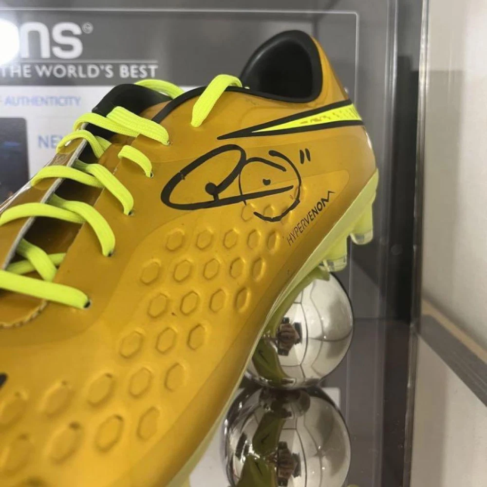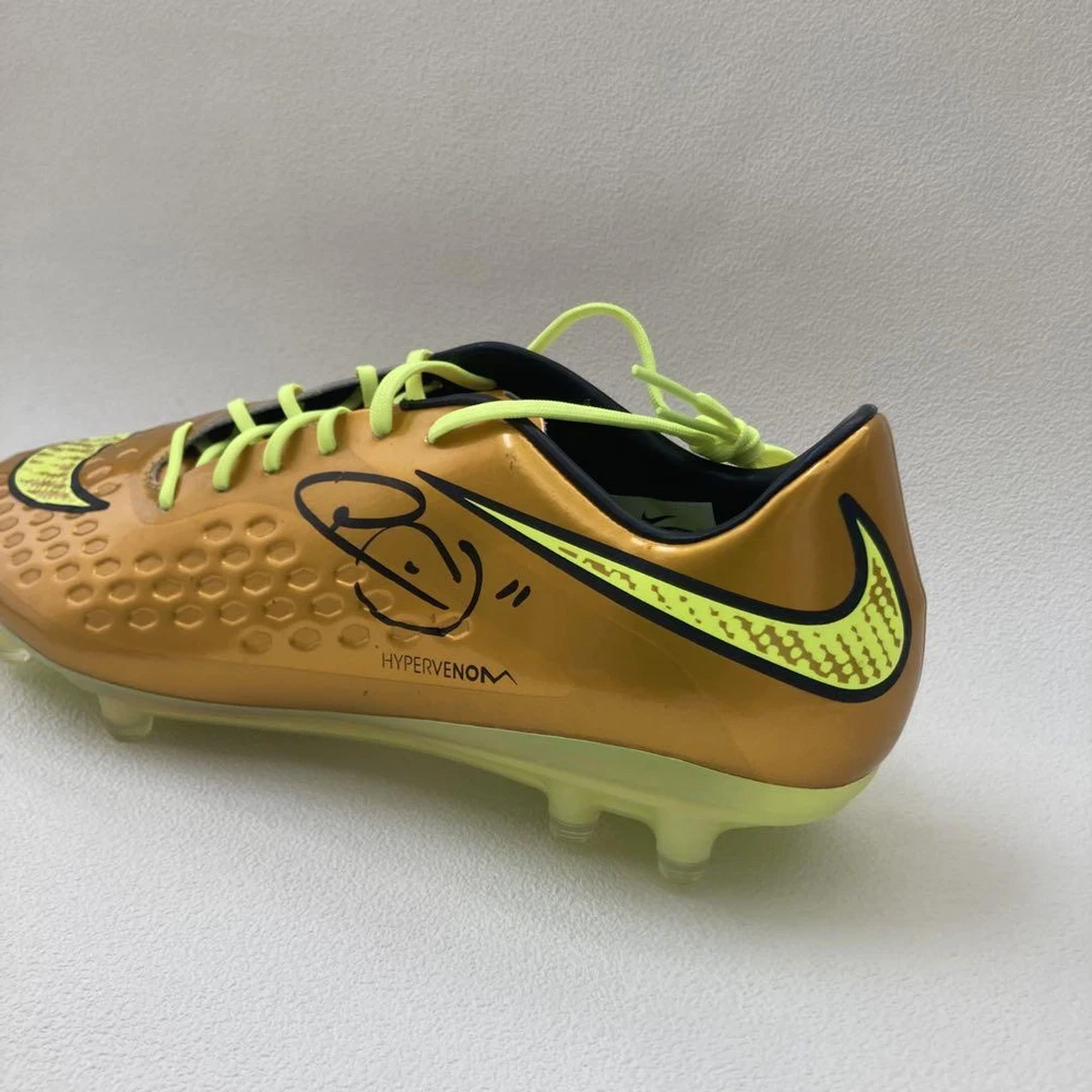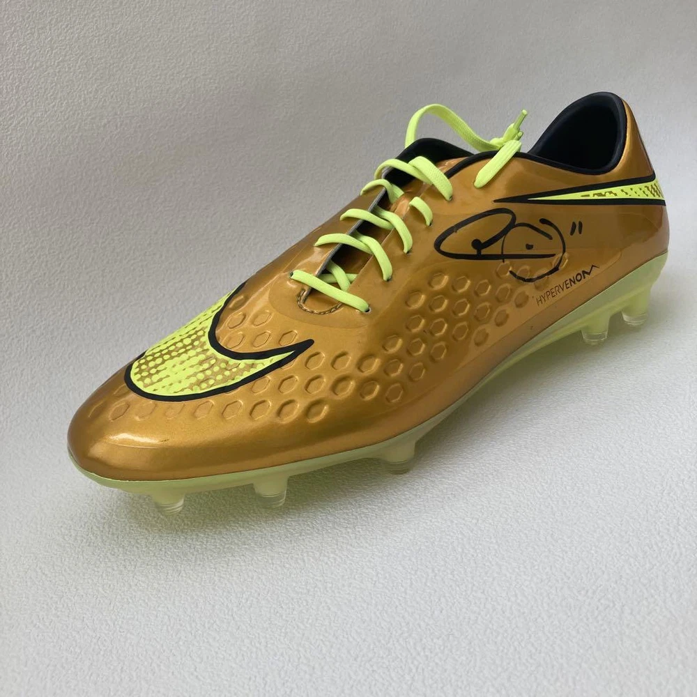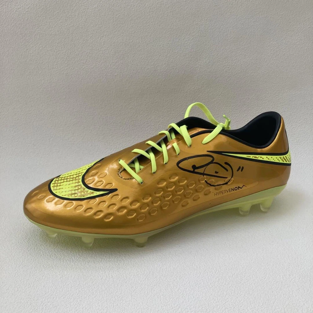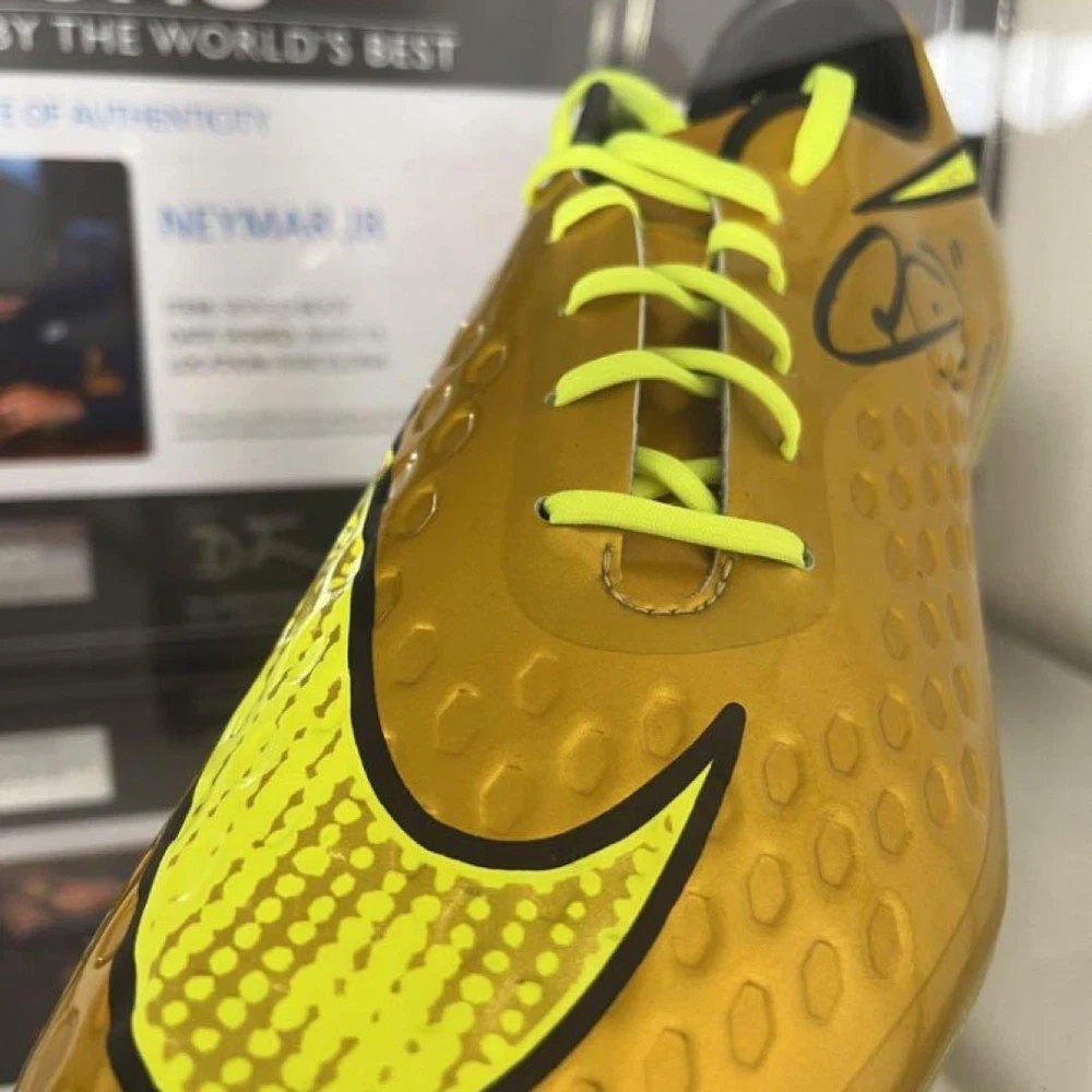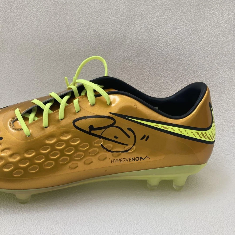 Neymar Autographed Hypervenom Soccer Cleats Gold Model US Size 9 Key Features **Product Description:** - Neymar Signed Hypervenom Soccer Cleat - Exclusive gold Neymar model - One foot only, no certificate of authenticity **Detailed Features:** - Ideal for fans of Premier League teams like Manchester United, Manchester City, Liverpool, Arsenal, Chelsea, Tottenham, and more. - Also suitable for Serie A, La Liga, Bundesliga, and various international teams. Item Specifics: C:Brand: Nike C:Type: Soccer Cleat C:Model: Hypervenom C:Main Color: Gold C:Country/Region of Manufacture: Unknown C:Sport: Soccer C:Personalize: No C:California Prop 65 Warning: No C:Unit Quantity: 1 C:Unit Type: Pair Specifications Brand Nike Country Japan Product Description Item Title Neymar Autographed Spikes Hypervenom Soccer Uniform Payment Supports managed payments Please pay within 5 days after auction is finished. About Us We are located in Japan. It's our pleasure to make you happy by proposing our recommend item. If you have any questions or request about items, please feel free to ask us. International Buyers - Please Note: -Import duties, taxes, and charges are not included in the item price or shipping charges. These charges are the buyer's responsibility. -Please check with your country's customs office to determine what these additional costs will be prior to bidding/buying. -These charges are normally collected by the delivering freight (shipping) company or when you pick the item up - do not confuse them for additional shipping charges. -We do not mark merchandise values below value or mark items as - gifts - The US and International government regulations prohibit such behavior. Thank you for your understanding.