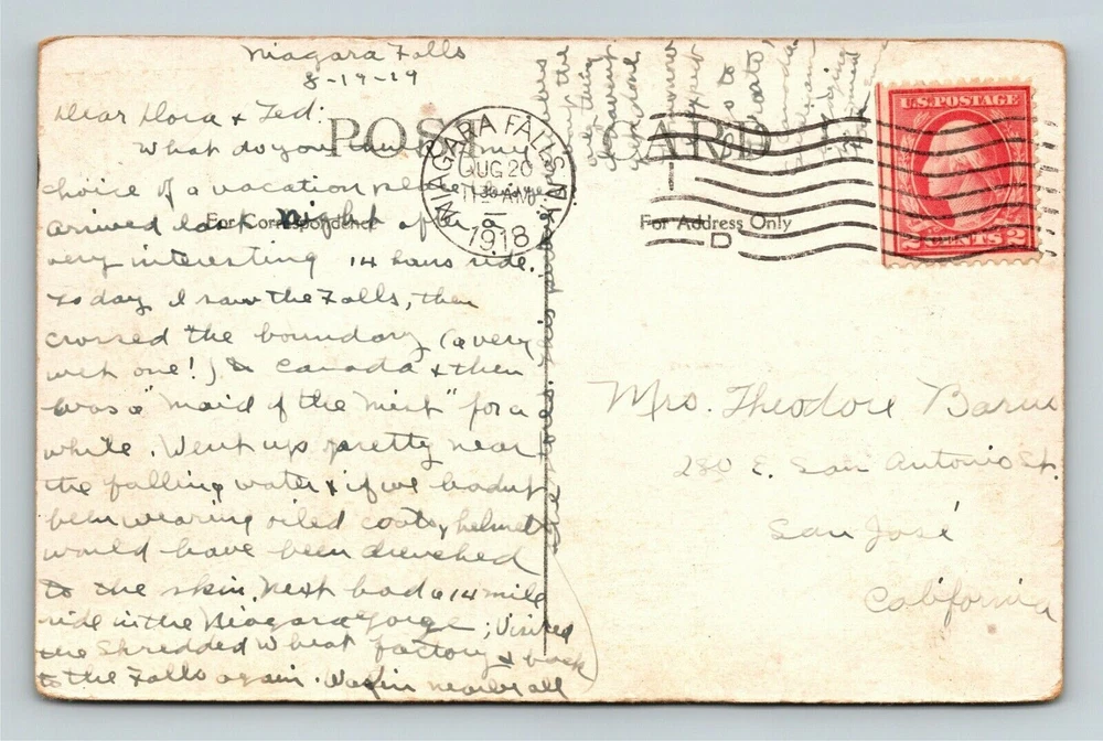 Original/Licensed Reprint: Original Country/Region of Manufacture: Unknown Subject: Cities & Towns Unit of Sale: Single Unit Era: White Border Year Manufactured: 1918 Type: Printed (Lithograph) City: Niagara Falls Postage Condition: Yes Country: USA Theme: Cities & Towns Region: New York