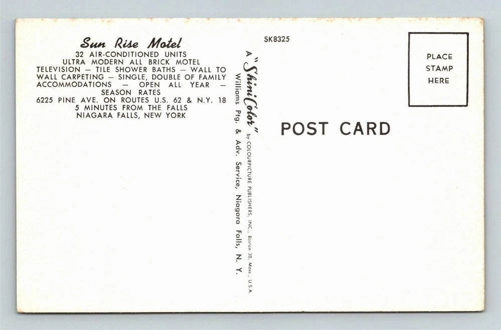 Niagara Falls NY-New York, Sun Rise Motel, Antique Vintage Souvenir Postcard