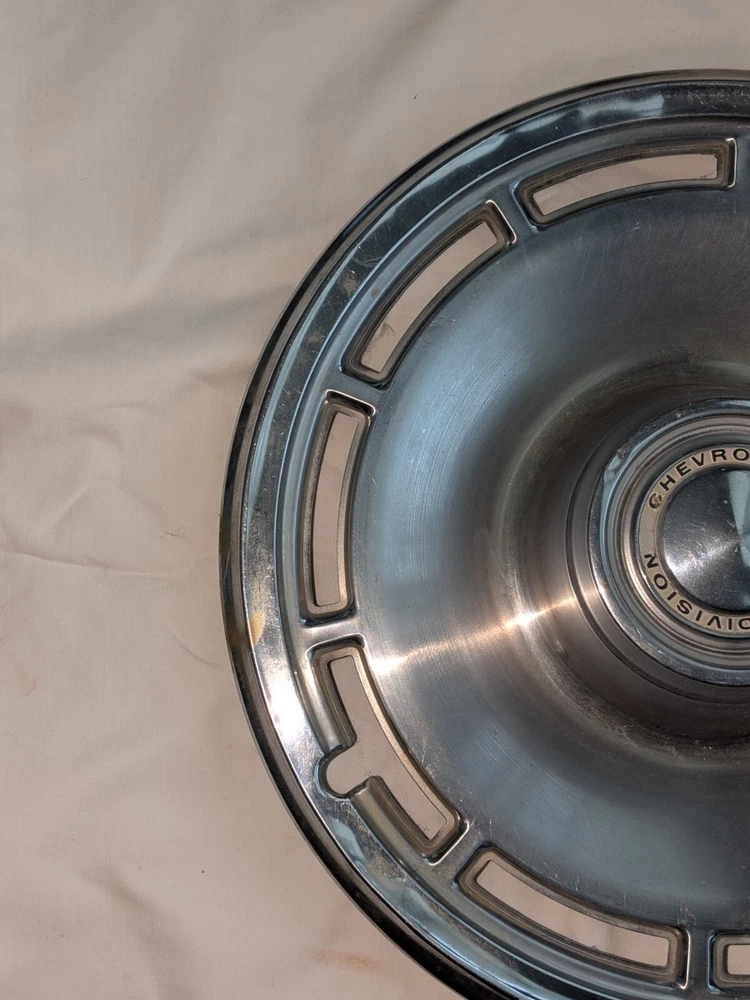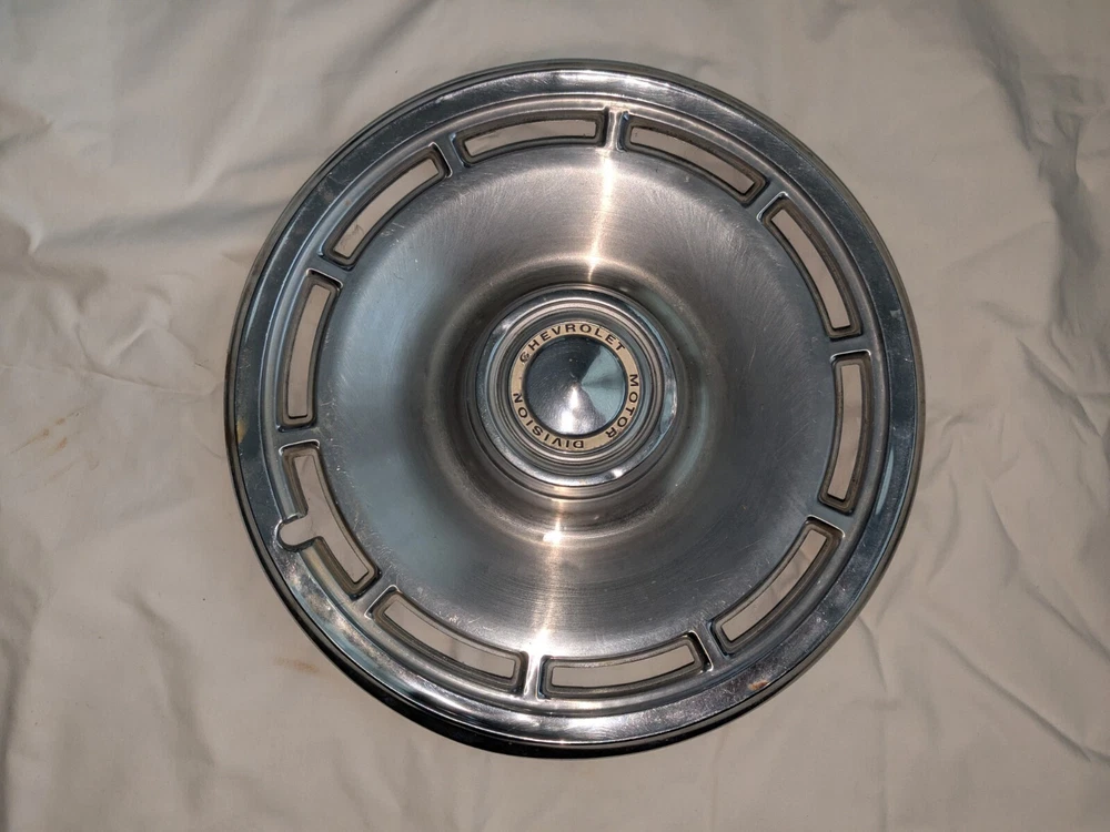 The photos show everything. As far as I know, this is for a 1960s model Chevrolet. Not sure which model, possibly multiple models. This is for a 14-in wheel. The mounting rim on the back side, that you see at the last photo, measures 13.5 in across. This is a very nice hubcap, daily driver quality. Not show quality. You can see the typical dings that you would expect. Please use the zoom feature and ask questions you may have. THIS WILL SHIP USING UPS, FEDEX OR USPS, WHICHEVER I SELECT AT TIME OF SHIPPING.