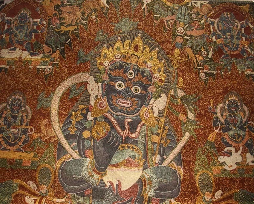 Nice Chinese Tibet Buddhist embroidery Brocade Tapis Thangka Tangka Mahakala