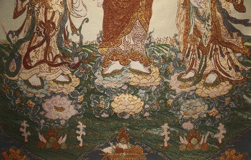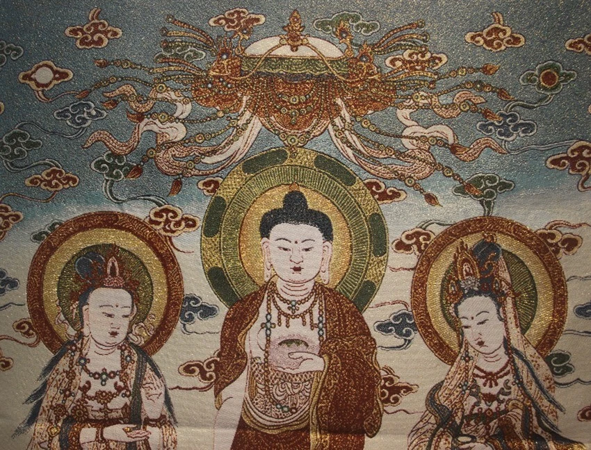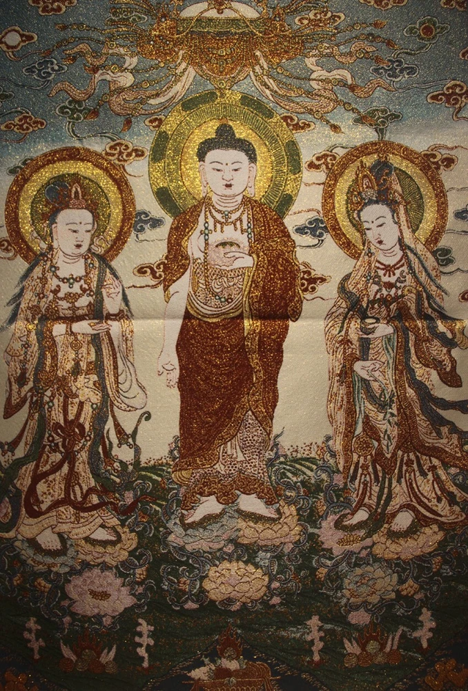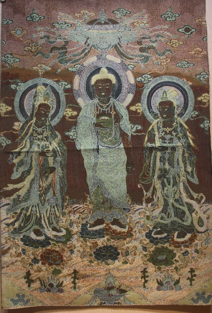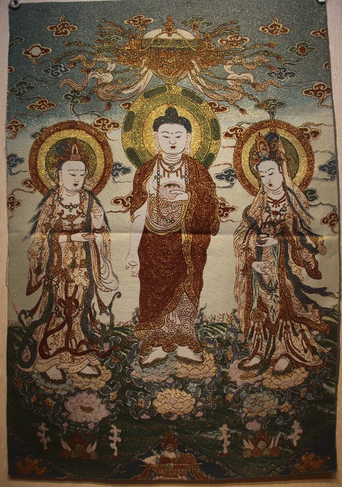 - Nice Chinese Tibet Buddhism embroidery Brocade Tapis Thangka Tangka "Three Sages" - Size : 34 x 22 inches (1 inch = 2.54 cm) Material : Silk Strong Package - Free Express Delivering Returns Policy : 30-days Return Yours Satisfaction is My Best Success I am an honest Himalayan Arts dealer - Focusing on this for almost thirty years I'm glad to share my collection with friends from all over the world Please feel free to let me know if there are any question Tashi Delek