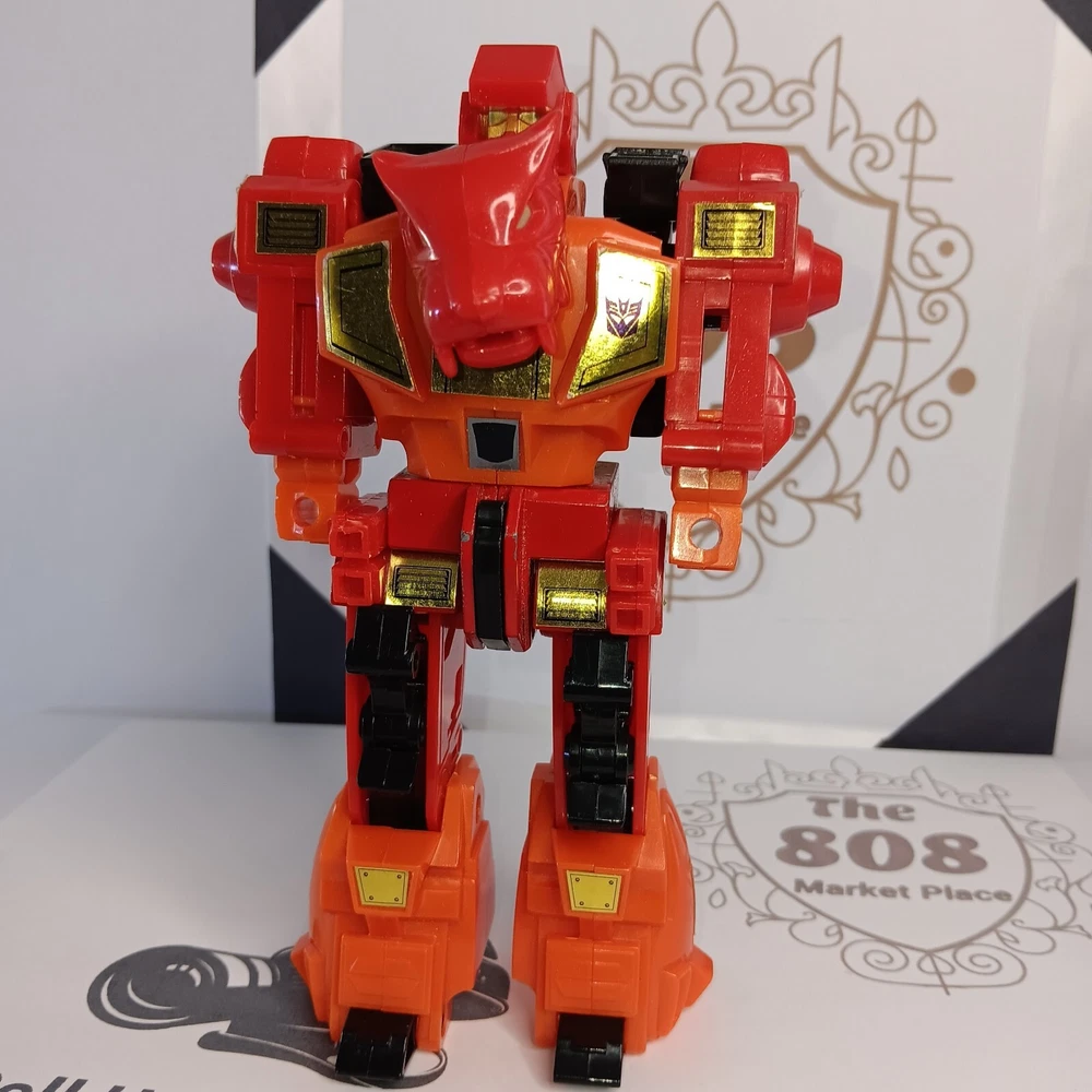 This Loose Transformers action figure features the iconic character Rampage Predicon from the 2013 Transformers series. The figure stands at 6 inches tall and is fully jointed, allowing for adjustable and transforming capabilities. It is a limited edition reissue of the original Decepticon Panther, manufactured in Japan by Hasbro. The figure comes in red and black colors, made of plastic and metal materials, and is in excellent condition. It includes no items and is suitable for ages 5 and up. The animation studio Sunbow and the movie Transformers are also featured in this listing. This action figure is a must-have for any Transformers fan and collector.