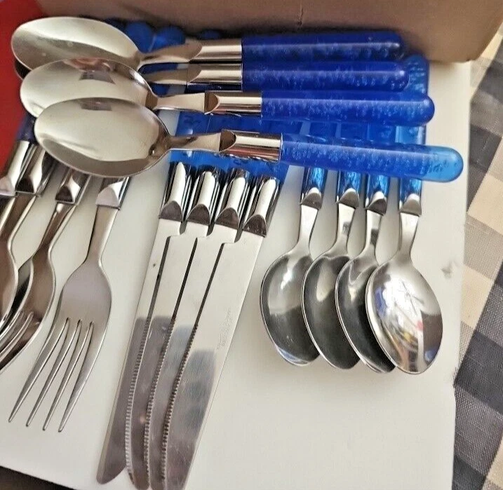 This is a set of four stainless steel flatware pieces made in China. The set includes spoons, knives, and teaspoons. These pieces are versatile and can be used for everyday dining or special occasions. The material is durable and long-lasting, ensuring that you will be able to use these pieces for years to come. Add this set to your kitchen collection and enjoy the convenience and style it brings to your dining experience.