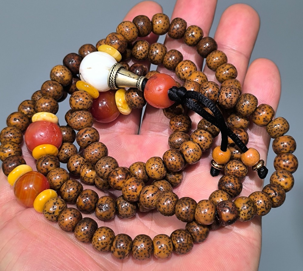 Right-click to open above image in a new tab and view larger-sized image resources Wonderful Tibet 108P Vintage Old Buddhist "XingYue Bodhi" Seed Mala Nanhong Agate Prayer Bead Amulet Size : 84 cm girth , 9 mm diameter (1 inch= 2.54 cm = 25.4 mm) Weight : 82 gram ( 1 pound = 454 gram ) Material : Old XingYue Bodhi / Old NanHong Agate / Old Amber / Old white coral / Old alloy copper stupa Style : Tibet If you need more pictures or video information, please feel free to let me know - Thank you ! Please feel free to let me know if there are any question! Welcome to Save my ebay shop - then you can receive my ebay Store newsletter for my New items from ebay message! Welcome to view our ebay store when you have time ! And welcome to view my own site tibet-buddhism .com - if you like some of them, I will list them to my ebay store for your purchase. Yours satisfaction is my best success! Tashi Delek