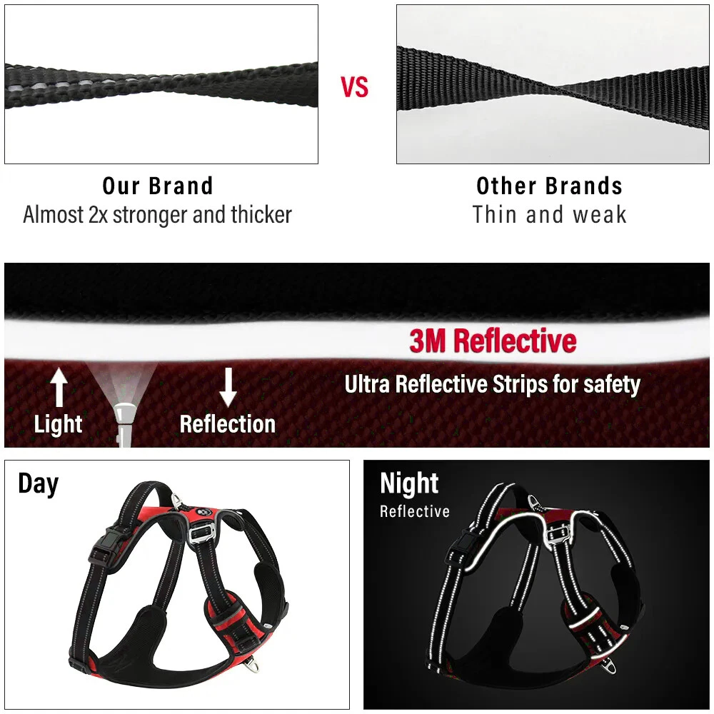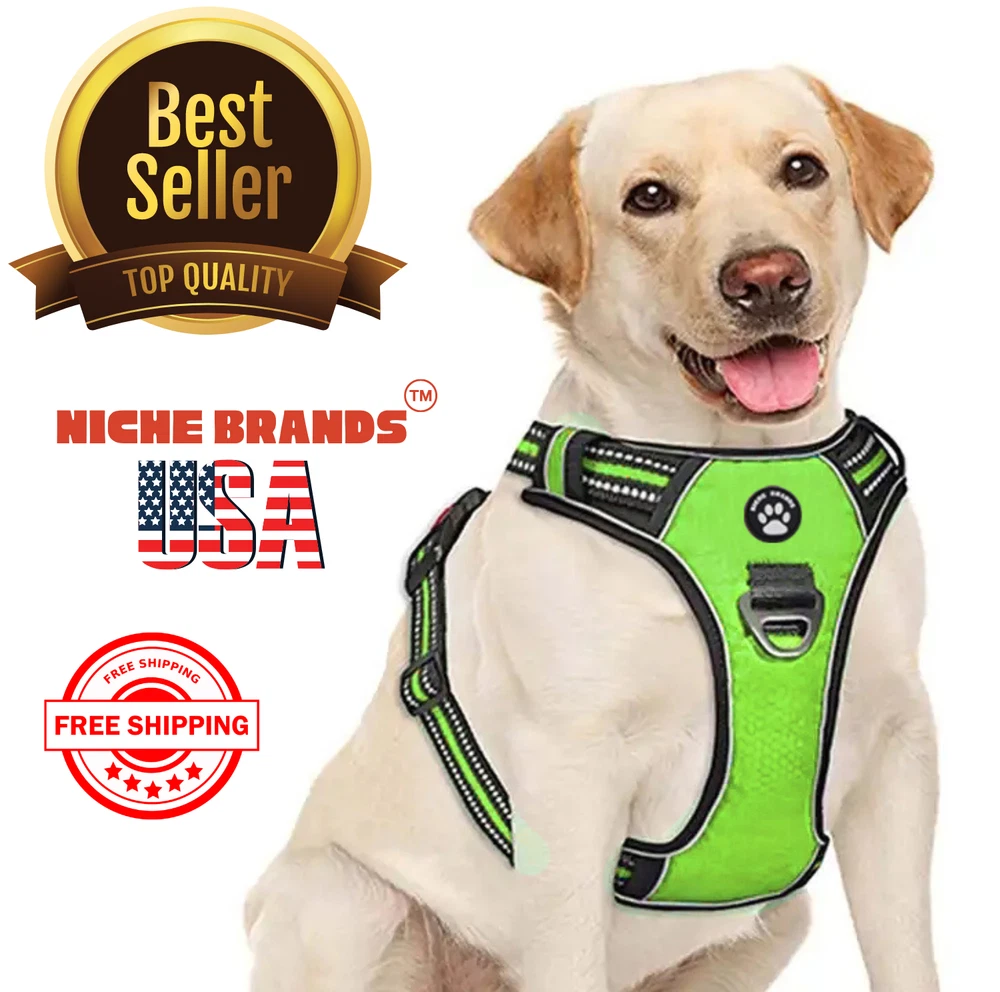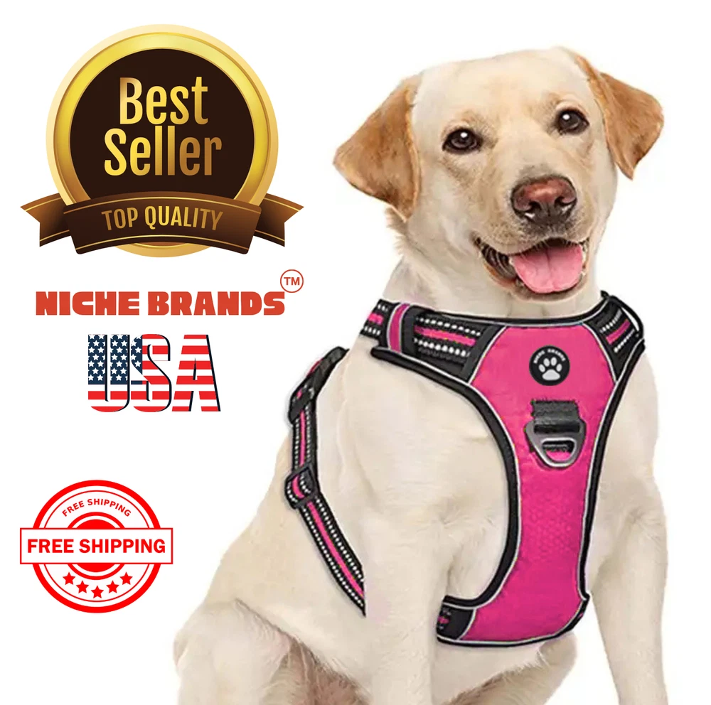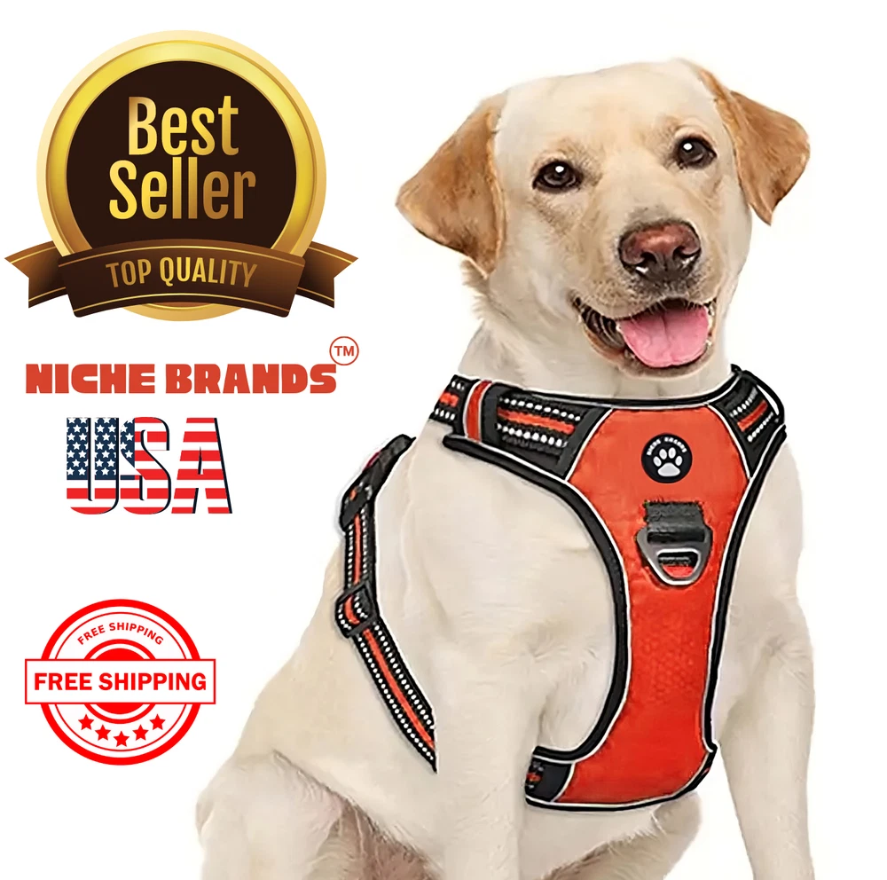 Niche Brands™ No-pull No-Choke dog harness is the ultimate solution for dog owners who want to keep their furry friends safe and comfortable while walking. Made with high-quality materials and featuring a unique design , this harness distributes pressure evenly across the chest and back to prevent choking and pulling on your dog's neck. The padded chest panel and adjustable sizing ensure a secure and comfortable fit for dogs of all sizes, while the reflective strips keep your dog visible in low light conditions. The easy-to-use buckle and leash attachment make it a breeze to put on and take off, even for the most active dogs. Adjustable Weight Pulling Harness Dog Harnesses Best Holiday Gift you could give to your Dog. Holiday SALE - 5% Off Product Description 🐶 [ NO PULL - CHOKE RESISTANT ] - NICHE BRANDS Designer non-pull adjustable dog harness with handle features RUSTPROOF Zinc Alloy dual metal D-rings, on both sides of the dog vest. The front D-Ring helps redirect your dog's forward motion, and the back ring is perfect for a casual dog walk, jogging, hiking, training. The four Adjustable straps fit various dogs with different body shapes. With 2 easy buckles on belly straps and 1 more lockable quick release buckle on the neckline, you don’t need to slip over the dog’s head to adjust the straps all the time. 🐶 [ Pet-friendly REFLECTIVE Material ] - Our durable dog vest is made of 1200D Oxford Fabric with sturdy stitching, suitable for long-time use. Breathable padded mesh design keeps air circulation around your dog’s body and protects your dog’s skin during outdoor activities. Reflective/Lighted straps guarantee you a safe and wonderful late-night walk 🐶 [ FIT for All ] - The harness comes in different sizes and fits SMALL/MEDIUM/LARGE/XL size fur friends. Refer the sizing guide for neck and chest girth and get the purrfect size for your furry friend. Large Dog Harness fits even the fluffiest dog 🐶 [ EASE TO USE AND SECURE LOCKING ] - The dog harness with simple design, Front clips and quick snap buckles which make it easy to put on and take off. Locking feature on both snaps makes it more secure, 100% ensures NO accidental detachment. 4 easy size adjustors at neck and chest for easy adjusting to fit your dog perfectly, even with some room of growth. Perfect training vest for daily walking, running, hiking, training, hunting, outdoor adventure and more! 🐶 [ EASY CLEANING ] - Harness material is dust resistant and Machine washable and hence easy for daily use. All metal accessories are rust-proof and provides long term Durability. 🐶 [ DURABILITY ] - Made of durable nylon webbing, enhanced high density nylon oxford, breathable mesh lining and strong accessories including buckle, size adjustors making it the best harness for dog. 🙏 Customer Service - Our customers’ amazing shopping experience is always our Priority. If you have any problems while using our products, please feel free to let us know. Our customer service will effectively solve your problem in 24 hours. Niche Brands pet supplies is a company that is passionate about providing high-quality, unique and innovative products for pets. Our mission is to create a brand that pet owners can trust and rely on for their pet's needs. We understand that every pet is different and has unique needs, which is why we offer a wide range of products that cater to different lifestyles and preferences. Package includes: 1 x No Pull Dog Pet Harness Adjustable Control Vest Dogs Reflective S M Large XL Shipping Information: Free shipping - Your item Ships Same Day to 1 Business Day
