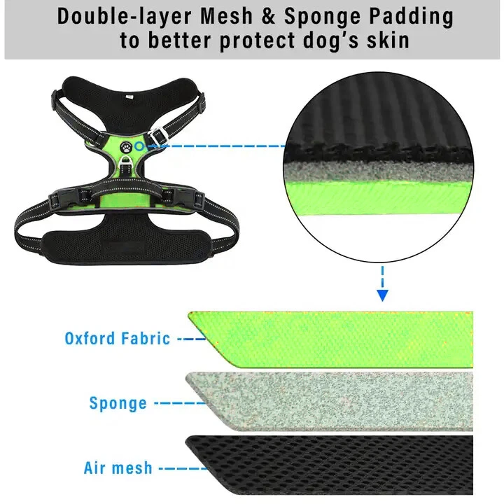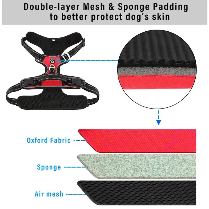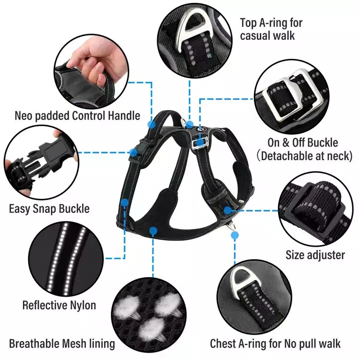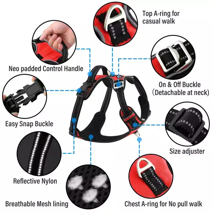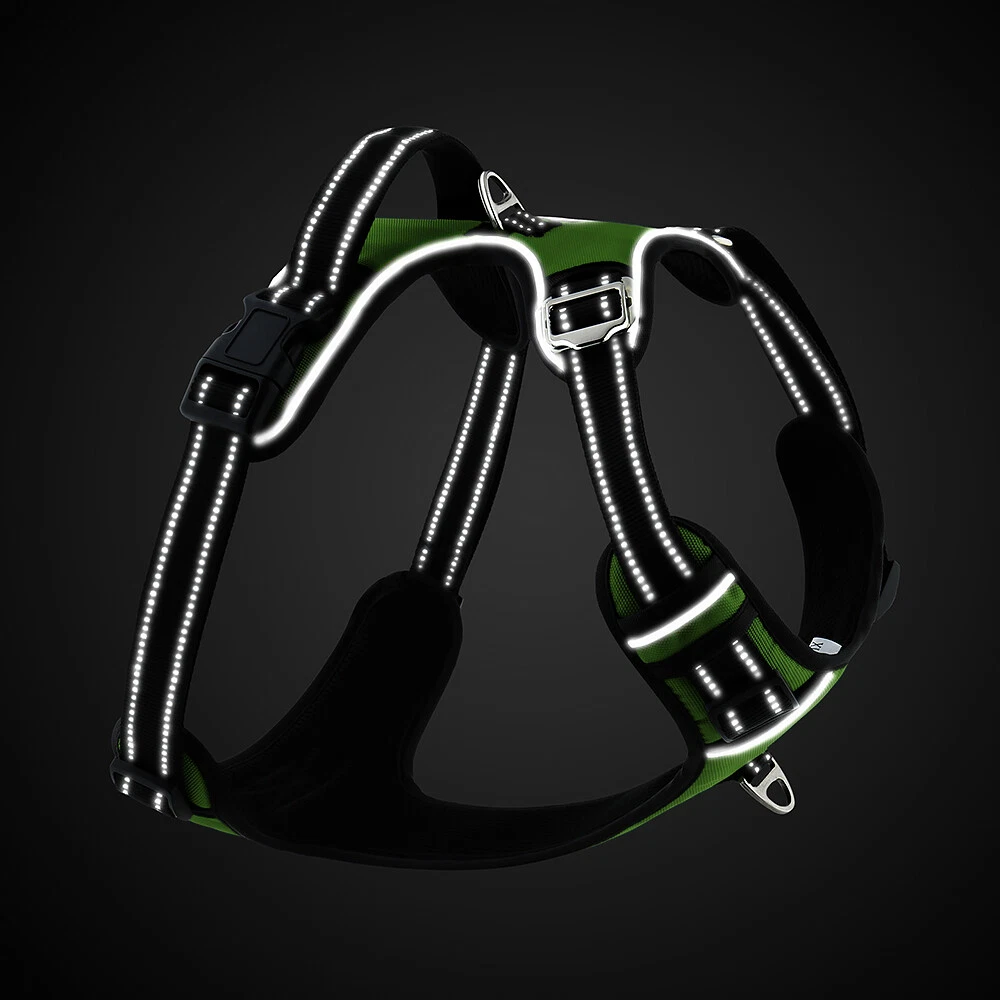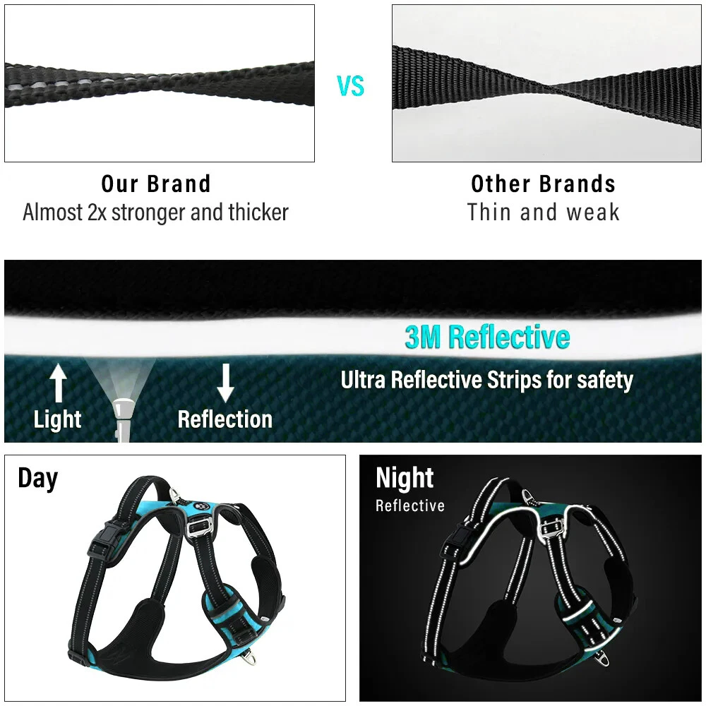 Niche Brands™ No-pull No-Choke dog harness is the ultimate solution for dog owners who want to keep their furry friends safe and comfortable while walking. Made with high-quality materials and featuring a unique design , this harness distributes pressure evenly across the chest and back to prevent choking and pulling on your dog's neck. The padded chest panel and adjustable sizing ensure a secure and comfortable fit for dogs of all sizes, while the reflective strips keep your dog visible in low light conditions. The easy-to-use buckle and leash attachment make it a breeze to put on and take off, even for the most active dogs. Adjustable Weight Pulling Harness Dog Harnesses Best Holiday Gift you could give to your Dog. Holiday SALE - 5% Off Product Description 🐶 [ NO PULL - CHOKE RESISTANT ] - NICHE BRANDS Designer non-pull adjustable dog harness with handle features RUSTPROOF Zinc Alloy dual metal D-rings, on both sides of the dog vest. The front D-Ring helps redirect your dog's forward motion, and the back ring is perfect for a casual dog walk, jogging, hiking, training. The four Adjustable straps fit various dogs with different body shapes. With 2 easy buckles on belly straps and 1 more lockable quick release buckle on the neckline, you don’t need to slip over the dog’s head to adjust the straps all the time. 🐶 [ Pet-friendly REFLECTIVE Material ] - Our durable dog vest is made of 1200D Oxford Fabric with sturdy stitching, suitable for long-time use. Breathable padded mesh design keeps air circulation around your dog’s body and protects your dog’s skin during outdoor activities. Reflective/Lighted straps guarantee you a safe and wonderful late-night walk 🐶 [ FIT for All ] - The harness comes in different sizes and fits SMALL/MEDIUM/LARGE/XL size fur friends. Refer the sizing guide for neck and chest girth and get the purrfect size for your furry friend. Large Dog Harness fits even the fluffiest dog 🐶 [ EASE TO USE AND SECURE LOCKING ] - The dog harness with simple design, Front clips and quick snap buckles which make it easy to put on and take off. Locking feature on both snaps makes it more secure, 100% ensures NO accidental detachment. 4 easy size adjustors at neck and chest for easy adjusting to fit your dog perfectly, even with some room of growth. Perfect training vest for daily walking, running, hiking, training, hunting, outdoor adventure and more! 🐶 [ EASY CLEANING ] - Harness material is dust resistant and Machine washable and hence easy for daily use. All metal accessories are rust-proof and provides long term Durability. 🐶 [ DURABILITY ] - Made of durable nylon webbing, enhanced high density nylon oxford, breathable mesh lining and strong accessories including buckle, size adjustors making it the best harness for dog. 🙏 Customer Service - Our customers’ amazing shopping experience is always our Priority. If you have any problems while using our products, please feel free to let us know. Our customer service will effectively solve your problem in 24 hours. Niche Brands pet supplies is a company that is passionate about providing high-quality, unique and innovative products for pets. Our mission is to create a brand that pet owners can trust and rely on for their pet's needs. We understand that every pet is different and has unique needs, which is why we offer a wide range of products that cater to different lifestyles and preferences. Package includes: 1 x No Pull Dog Pet Harness Adjustable Control Vest Dogs Reflective S M Large XL Shipping Information: Free shipping - Your item Ships Same Day to 1 Business Day