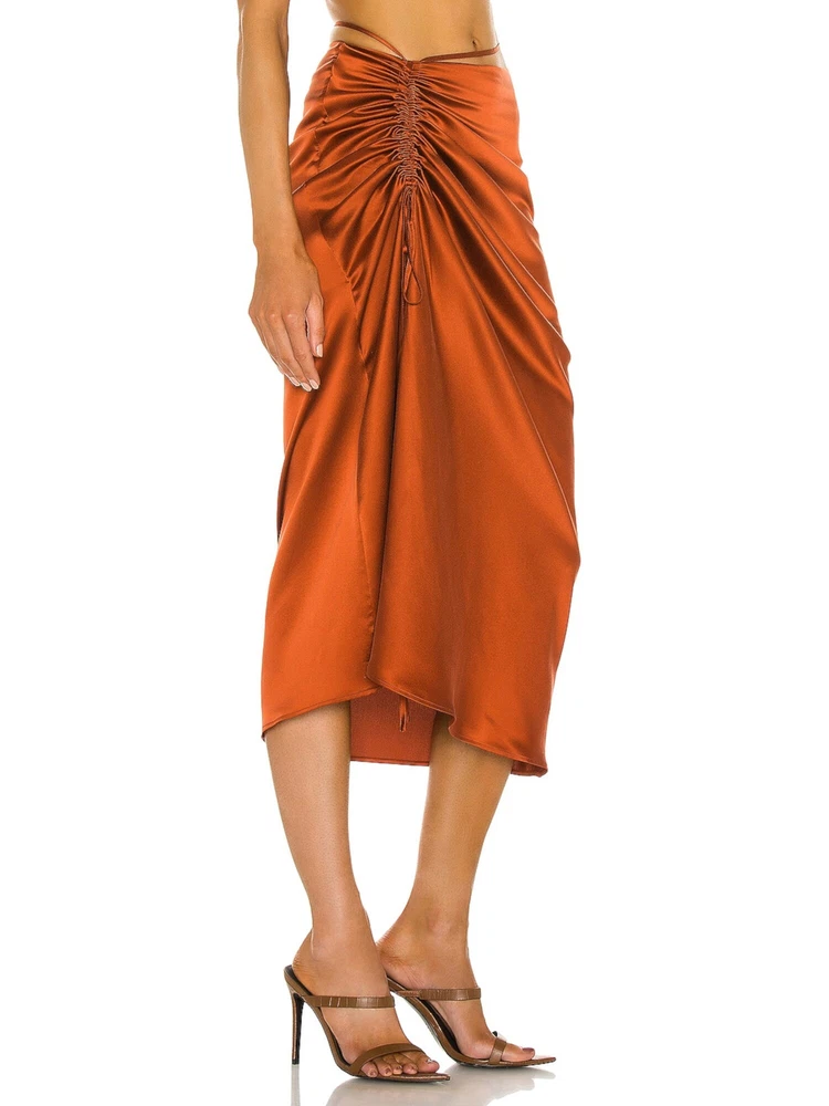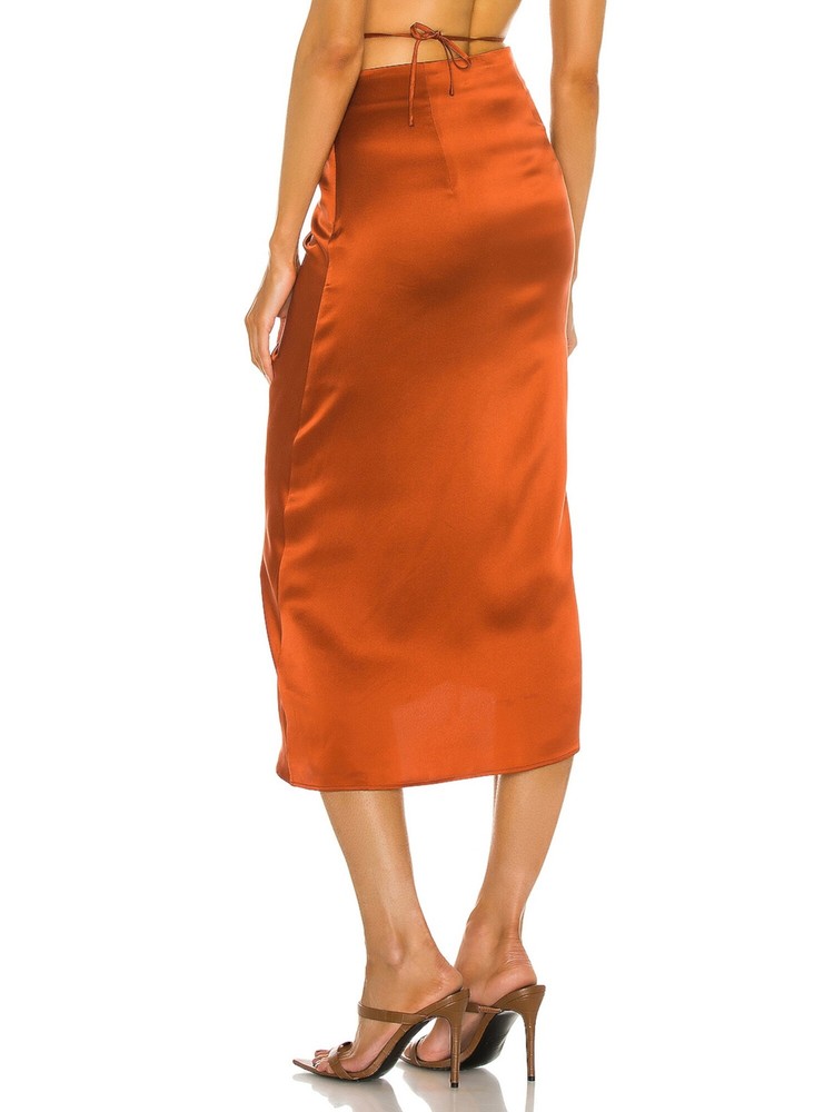 This vibrant orange pencil skirt from NICHOLAS is a showstopper! The adjustable ruching at the front adds a flattering fit, while the zippered detail gives it a sleek look. Perfect for parties, the midi length is elegant yet fun—plus, the quality feels luxurious. Hand wash to keep it looking fresh, but it’s totally worth it for such a standout piece. Love the way it hugs curves without sacrificing comfort!