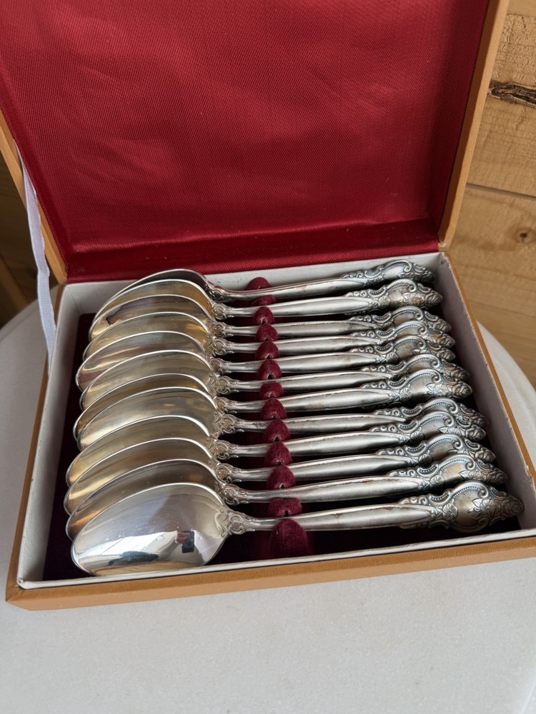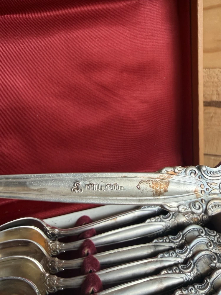 Nickel Silver Spoons Russian Vintage Collection МНЦ ц 4Р 00К VTG Spoon Set (12) Set of 12 in box. Set shows age and wear. See photos for details.