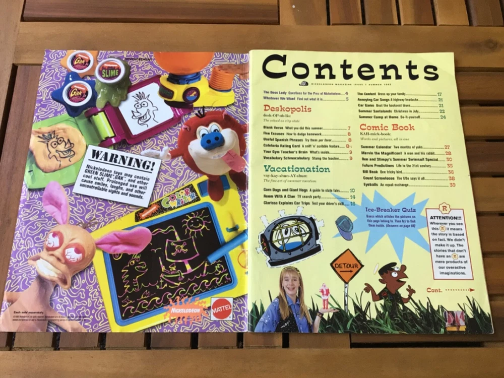The premiere issue of Nickelodeon magazine! Ren and Stimpy’s summer swimsuit issue. I just found this in my childhood collection and it’s pretty amazing! A quick bit of research shows that the stickers are missing. As is condition. Thanks for looking!