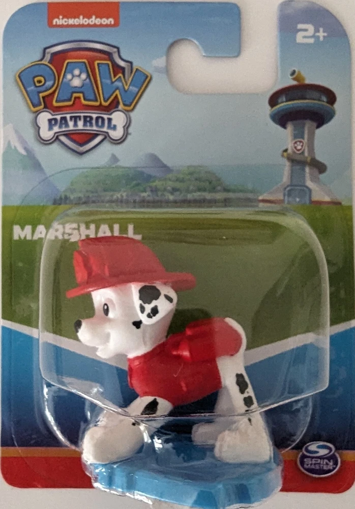 Marshall Paw Patrol to the ruff-ruff-rescue. The Paw Patrol Mini Pup is ready to go on any adventure. Together, your child's imagination will be lit up with pup inspired rescue missions full of friendship, teamwork and bravery. Remember, no job is too big, no pup is too small. Nickelodeon's Marshall figurine is perfect as a cake decoration and the police dog is serious about your paw patrol fan's birthday. Bring home this Marshall paw patrol mini figure and collect them all. Recommended for ages 2 and up.