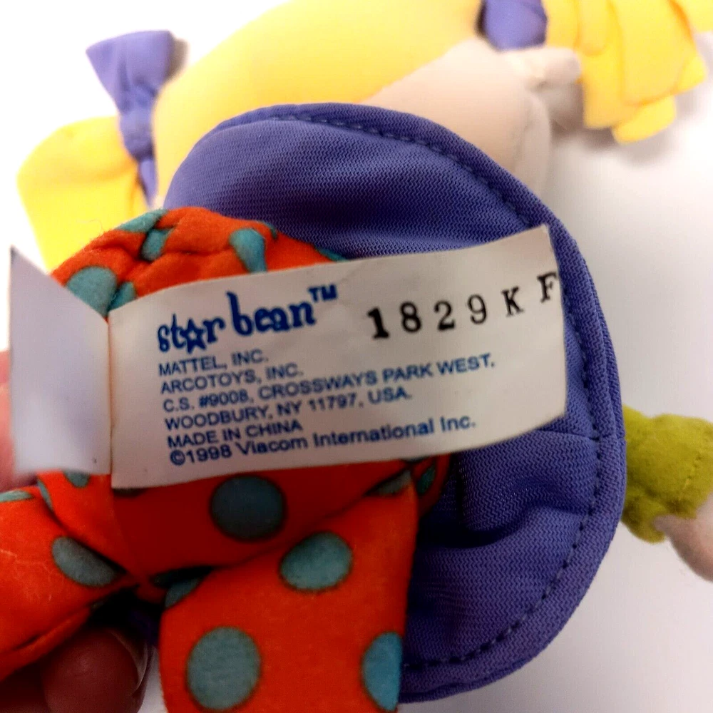 This vintage lot of Rugrats plush toys includes Chuckie Finster, Reptar, Angelica, Tommy Pickles, and more. These small (6-14 in) stuffed animals come in multicolor designs and were manufactured in China by Mattel in 1998. The set is perfect for all occasions and features retired characters from the popular Rugrats franchise. Each plush toy in this lot is in great shape and ready for display or play. Whether you're a collector or just looking for some nostalgic fun, this Rugrats plush collection is sure to delight. Don't miss out on the chance to own these classic stuffed animals. Rugrats Set of Five Plush Chuckie Finster Reptar Angelica Tommy Pickles 1998 VTG Tommy Pickles New with Tag and Tommy Pickles pre-owned Angelica Pickles pre-owned, one has tag that is not attached Chuckie Finster with raptor outfit pre-owned Approximately 9 inches x 6 inches See photographs for condition and measurements Mattel Star Bean Viacom Nickelodeon Good condition Total 5 plush toys 1829KF Vintage