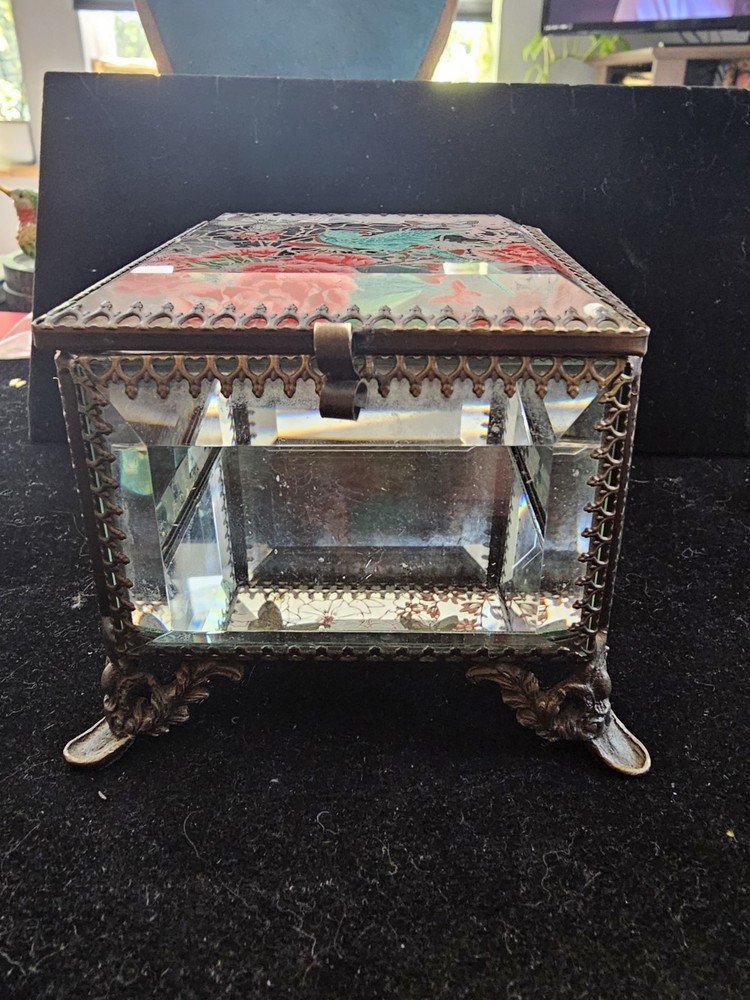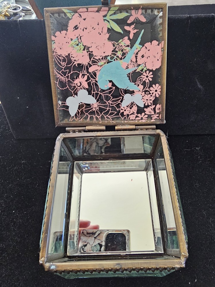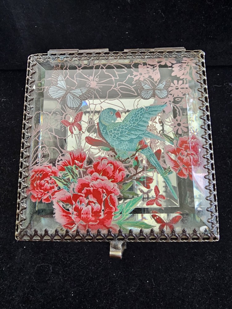 Type: Trinket Box Pattern: Floral Brand: Nicole Miller Material: Glass Size: 3 1/2" X 3" Features: Boxed Country of Origin: China Color: Multicolor Finish: Mirrored Subject: floral bird butterfly Style: Hollywood Glam Occasion: All Occasions Shape: Square