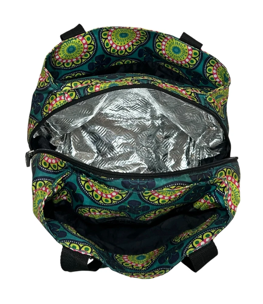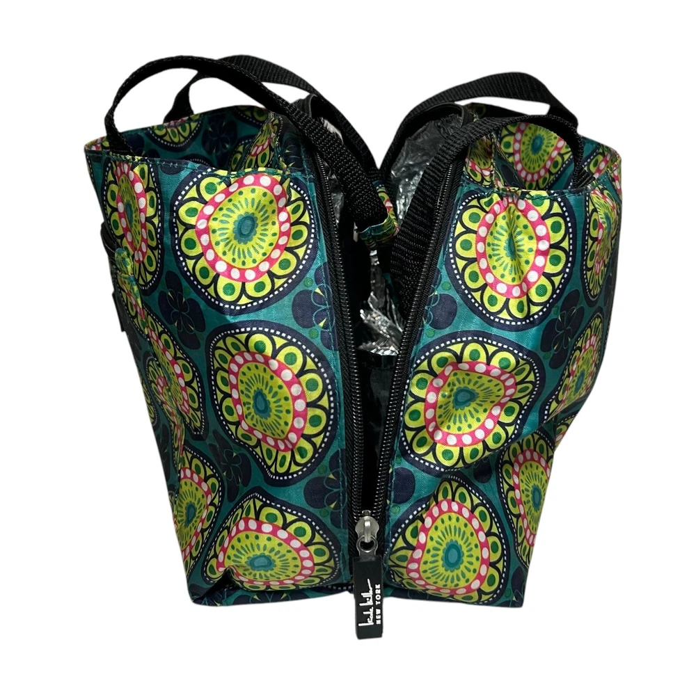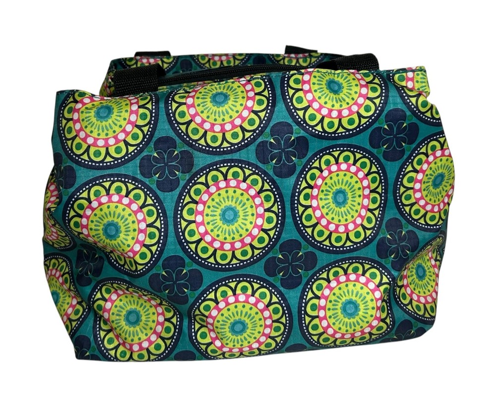 Nicole Miller Insulated Lunch Bag Tote Teal Green Pink Medallion Kaleidoscope