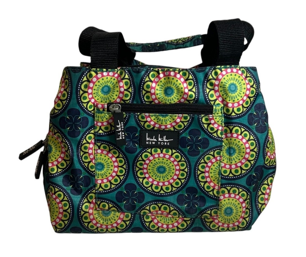 HomeNicole Miller Insulated Lunch Bag Tote Teal Green Pink Medallion Kaleidoscope