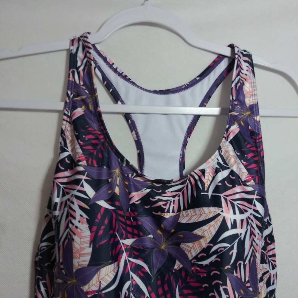 Nicole Miller Women's Swimsuit Racerback Fully Lined Purple floral Size M Racer back style Lines Shelf bra Like new