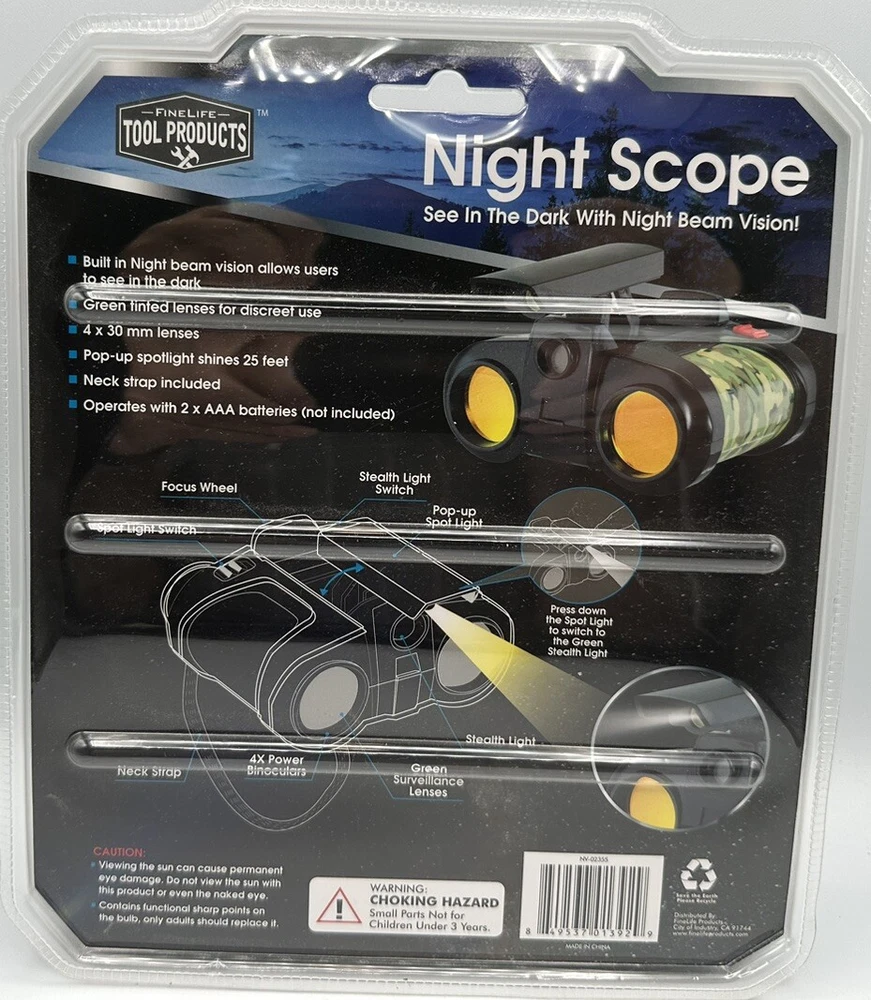 This binocular comes with a pop-up spotlight LED that helps in seeing up to 25 feet, making it ideal for day or night use. The unit is mid-sized and has a camouflage color that is perfect for hunting, general purpose, and birding. It features a 4x30 mm lens with maximum magnification, and the model is NV-02355. The unit is of FineLife Tool Products brand, and it has night vision capabilities. The item is a unit quantity, perfect for those looking for a reliable and efficient binocular. This binocular is an excellent choice for those who need to see in low-light environments, and it will surely exceed your expectations.