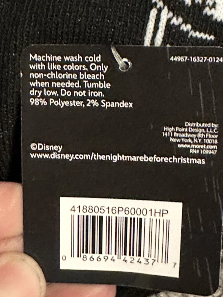 Add a little Disney magic to your sock collection with these Nightmare Before Christmas women's no-show socks. These socks come in a pack of five and feature a black color with a festive Christmas theme. The socks are made of a lightweight blend of polyester and spandex, ensuring both comfort and durability. They are available in size L and have a no-show length, making them perfect for any occasion. The socks also feature a fun geometric pattern and the Disney brand. These socks are ideal for walking and are a must-have for any Disney fan.