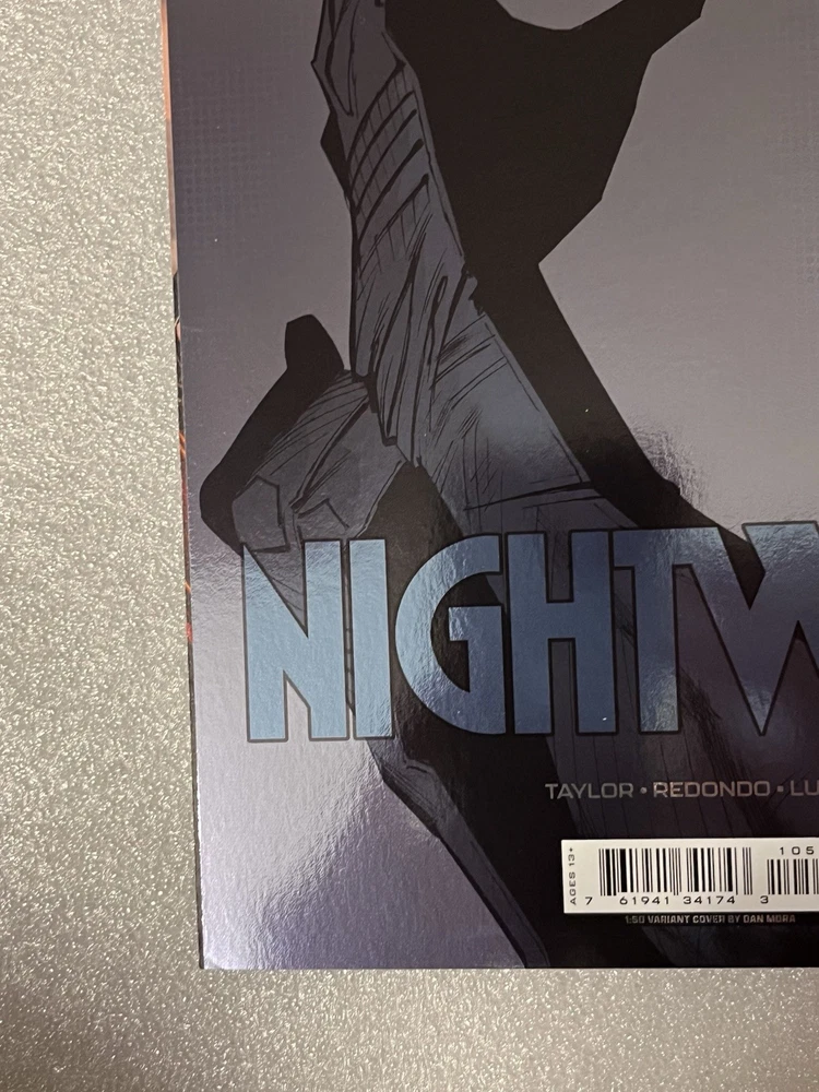 This listing is for a Near Mint copy of Night Wing issue #105. The 1:50 foil/virgin ratio variant featuring stunning cover art by Dan Mora. Actual photos of the book are posted. All of our books are packaged professionally. Bagged and boarded. Inside of a protective sleeve, and shipped in a Gemini mailer. Questions and offers are always welcome.