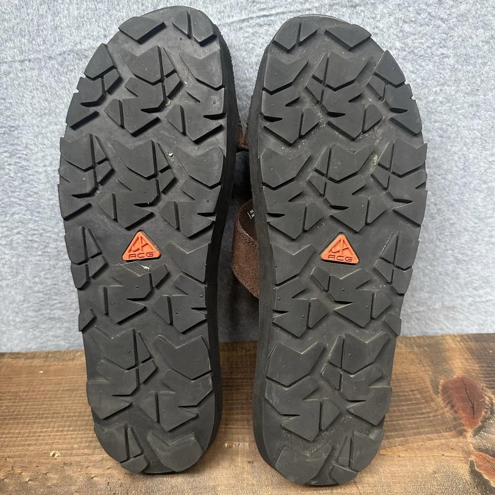 Slip into comfort with the Nike ACG Grind Slide, a perfect blend of style and ease for the active man. These size 12 sport sandals feature a solid brown color with black accents, complemented by the iconic Nike ACG design. Crafted with a durable leather upper and a comfortable synthetic insole, these sandals are tailored for everyday wear and outdoor adventures alike. The Nike ACG Grind Slide boasts a convenient slip-on closure, allowing for quick and effortless on-and-off. Ideal for sports enthusiasts and those who love colorful thematic designs, these sandals are a versatile addition to any wardrobe. The synthetic outsole provides long-lasting wear, making them a reliable choice for any activity that comes your way. In used condition with typical signs of wear. Any serious flaws or issues will be shown in the photos.