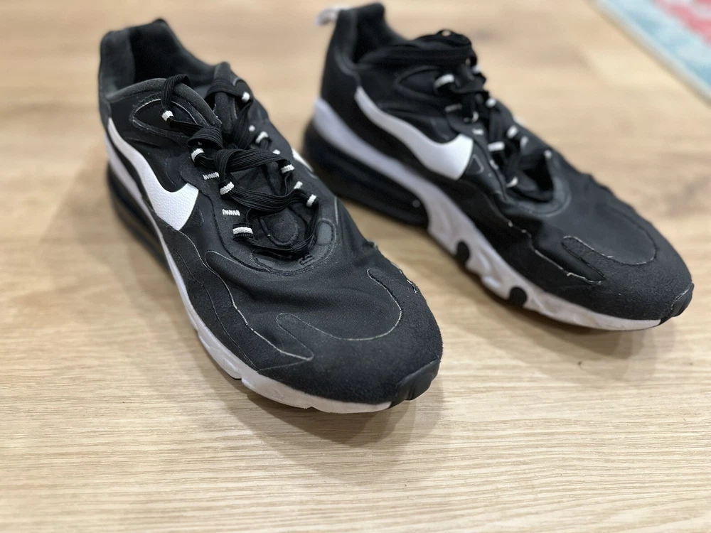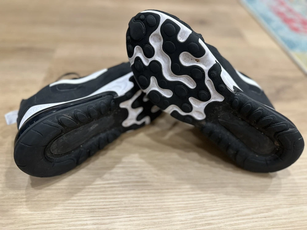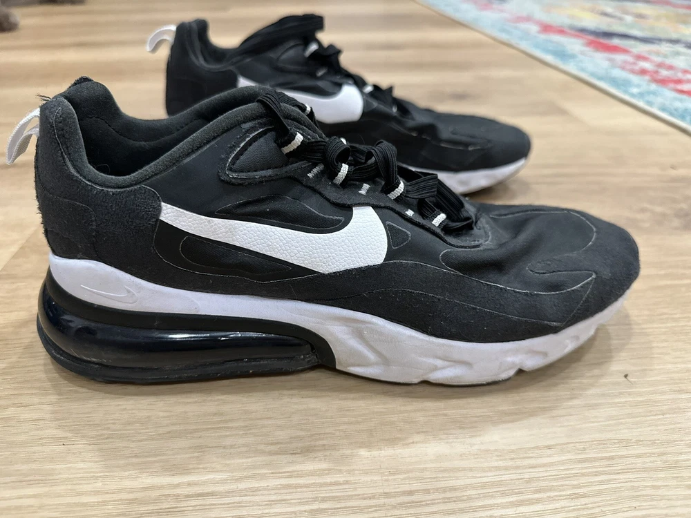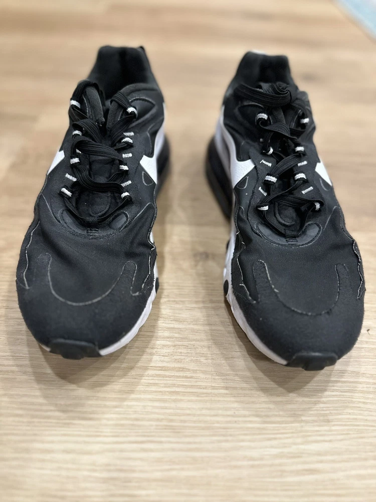 Experience comfort and style with the Nike Air 270 React Black and White Men's Sneakers, perfect for those who value both form and function in their footwear. These size 9.5 sneakers feature a sleek synthetic upper and a durable rubber outsole designed to provide a cushioned step and secure traction on various surfaces. The low-top shaft ensures a comfortable fit around the ancle, while the breathable lining offers an airy feel throughout the day. Whether you're hitting the gym, going for a run, or simply enjoying a casual day out, these versatile shoes are suited for a range of occasions. The white and black color scheme provides a classic look that pairs well with any outfit, and the React technology ensures a responsive step, making them an ideal choice for active individuals. Enjoy the fusion of style and performance with these Nike Air sneakers.