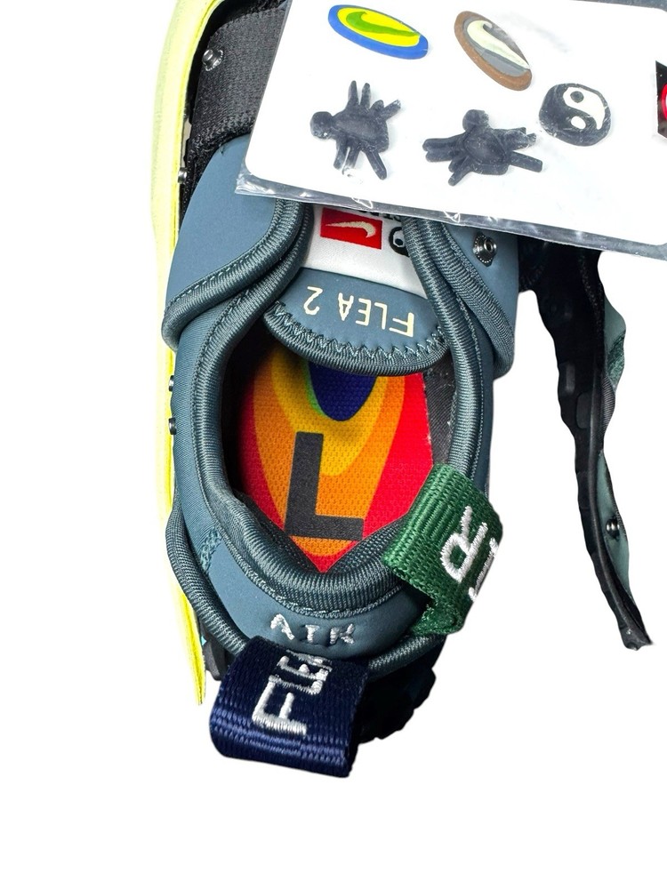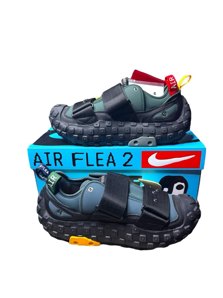 Elevate your sneaker game with these Nike Air Flea 2 x Cactus Plant Flea Market Low shoes. Designed with a stylish low top silhouette, these sneakers feature a unique faded spruce color that will make any outfit pop. The shoes are made with high-quality materials and have a comfortable athletic fit, making them perfect for any casual occasion. These sneakers are a must-have for any sneakerhead and come with a Nike style code of DV7164-300. The shoes are brand new and were released in 2023, ensuring that you will be rocking the latest trend. Don't miss out on adding these to your collection and stepping out in style.