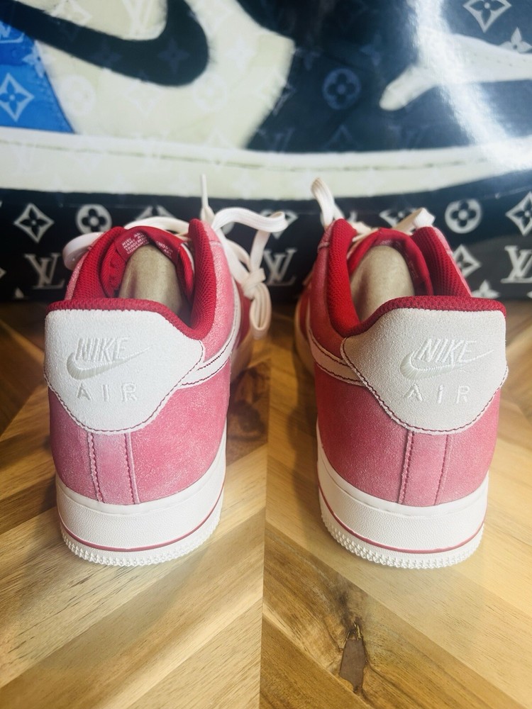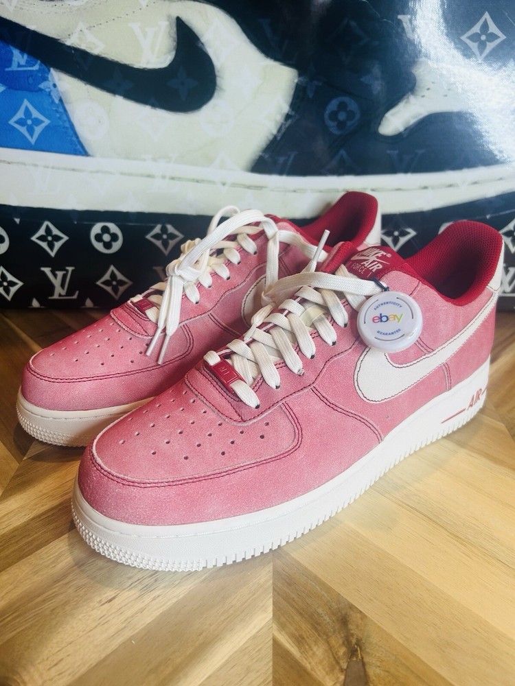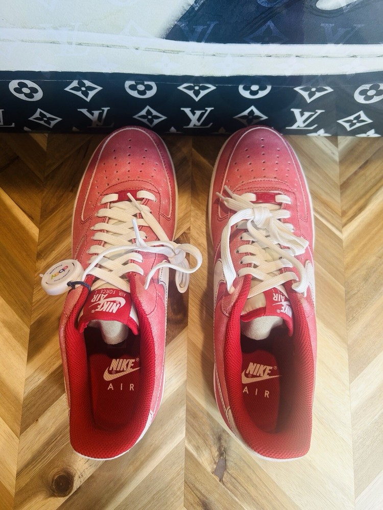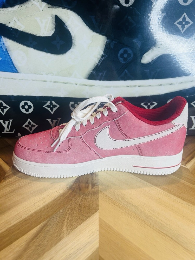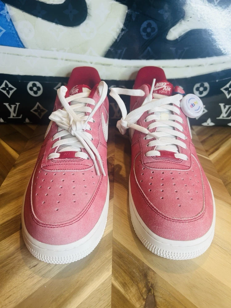 Elevate your shoe game with these Nike Air Force 1 07 Lv8 Dusty Red Sneakers. The iconic shoe was originally released in 1982 and has since been a staple in the sneaker community. This particular colorway features a Gym Red and Sail combination with accents of white, making it a versatile addition to any wardrobe. The shoe's features include a lace-up closure, rubber midsole and outsole, Nike Air Force 1 branding on tongue, suede upper, polyester textile tongue, and additional Nike Air branding at heel. It also has a cushioned heel collar, perforated toe box, and bold red hue for added style. These sneakers are perfect for various activities such as gym and training, walking, cross-training, CrossFit, basketball, bodybuilding, running, and jogging. Get your hands on this rare and highly sought-after pair of Nike Air Force 1s today.