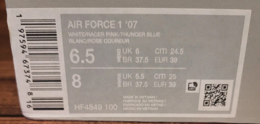 Nike Air Force 1 '07 South Beach White Pink Thunder Blue HF4849-100 Men's Size 6.5.