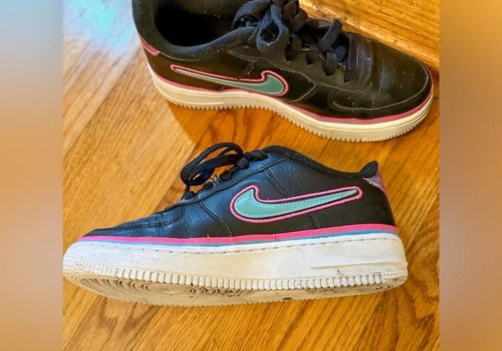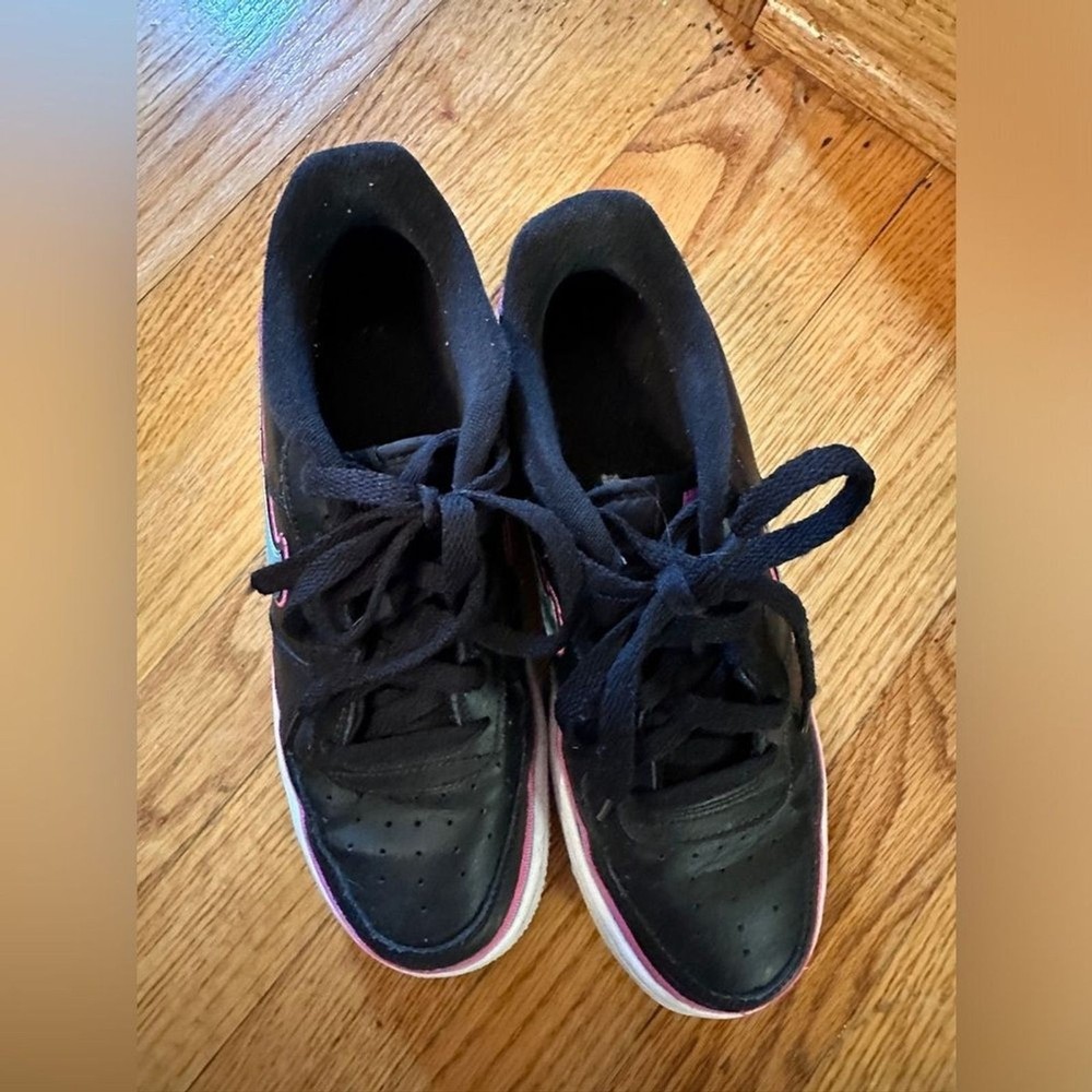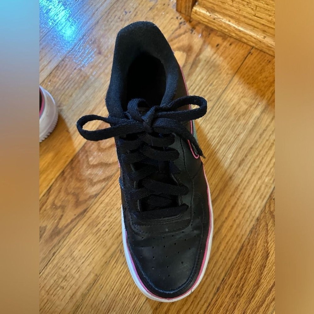 Brand: Nike Style: Sneaker Shoe Shaft Style: Low Top Fabric Type: Blended Fabric Color: Black Product Line: Nike Air Force 1 2022877967833570: 6.5 Model: Nike Air Force 1 LV8 388499418630364: black 607316689733399: used_good 2782490625175405: fashion sneakers Seller Notes: “Needs to be cleaned, some piling on interior fabric” Toe Shape: Round Toe Department: Boys 372885700169792: Nike US Shoe Size: 6.5 Type: Athletic