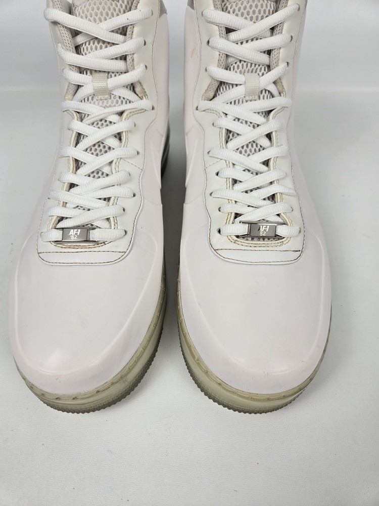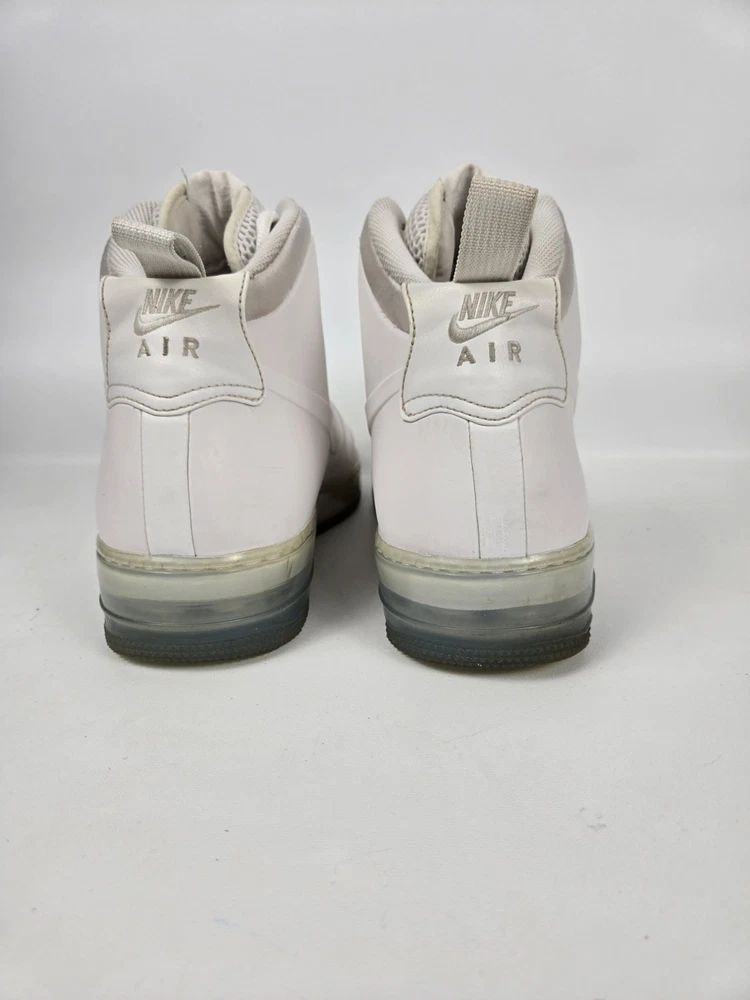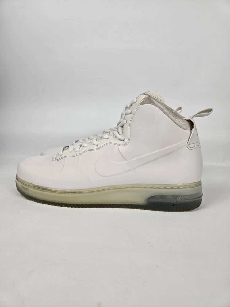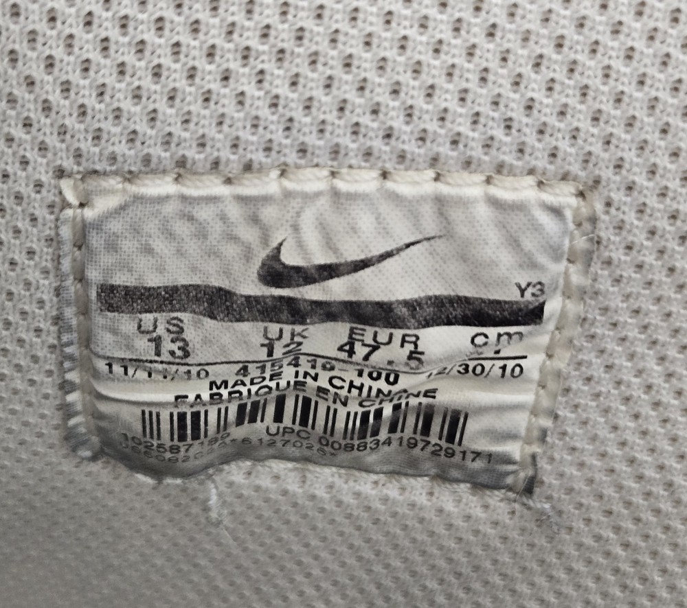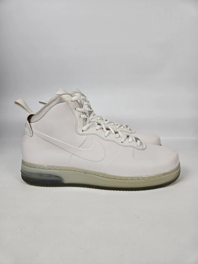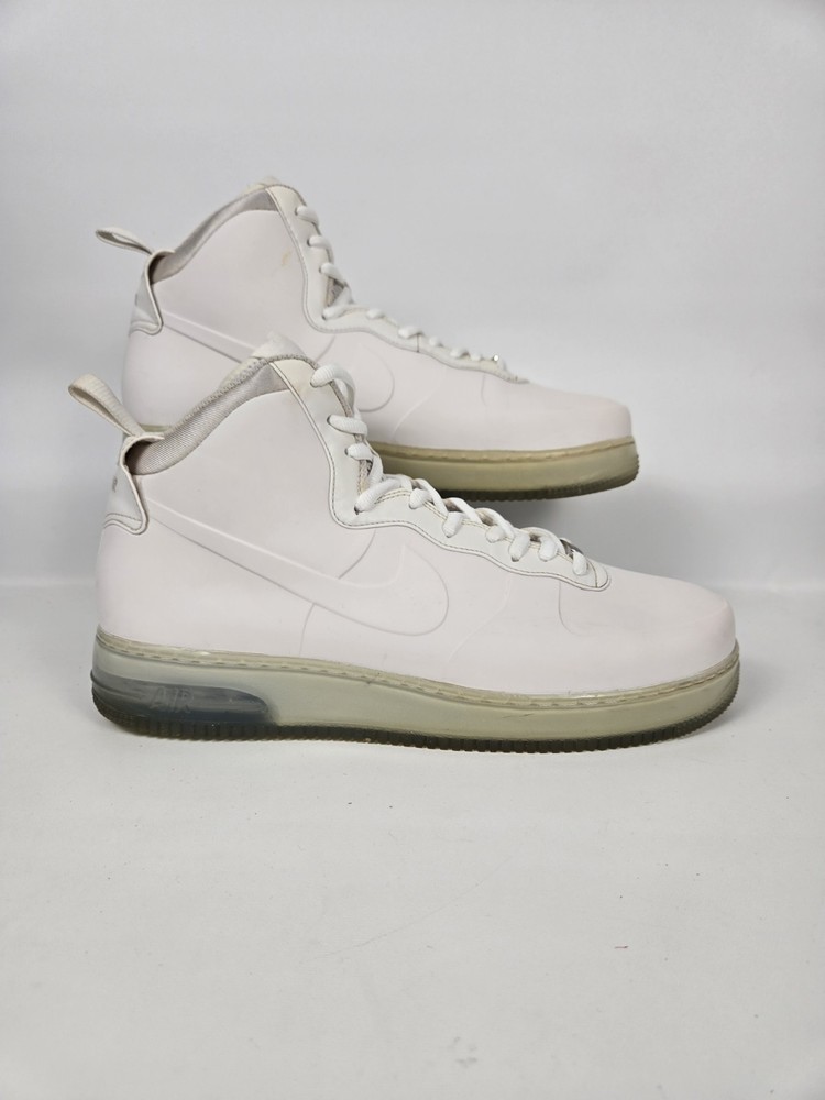 Shoe Shaft Style: High Top Model: Nike Air Force 1 Customized: No Year Manufactured: 2010 Color: White Style: Sneaker Brand: Nike Style Code: 415419-100 EU Shoe Size: 47.5 Pattern: Solid Vintage: No Country of Origin: China Type: Athletic Closure: Lace Up UK Shoe Size: 12 Occasion: Activewear, Casual US Shoe Size: 13 Upper Material: Foamposite Features: Ankle Strap Product Line: Nike Air Force Performance/Activity: Basketball, Walking Department: Men Release Year: 2010