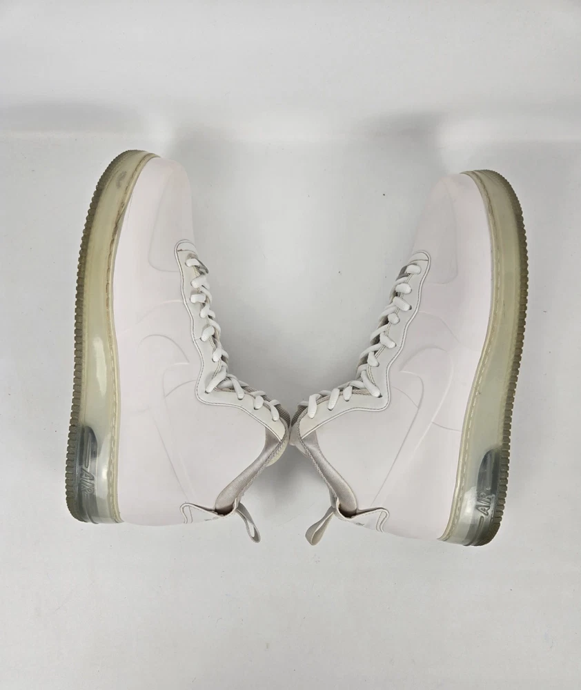 Elevate your sneaker game with the classic Nike Air Force 1 Foamposite, a must-have for any enthusiast. Featuring a sleek white colorway and the iconic high-top design, these kicks are tailored for both style and performance. The durable Foamposite upper provides a comfortable fit and is adorned with a lace-up closure for a secure feel.Designed for basketball and walking, these size 13 athletic sneakers boast a solid pattern and are a part of the renowned Nike Air Force product line. With a UK size 12 and EU size 47.5 equivalent, they ensure a great fit for a variety of feet. The model number 415419-100 stands as a testament to their authenticity, making them a standout addition to any collection. Please see all the pictures for your consideration. If you have further questions or concerns. Please ask Thank you #5(#3)