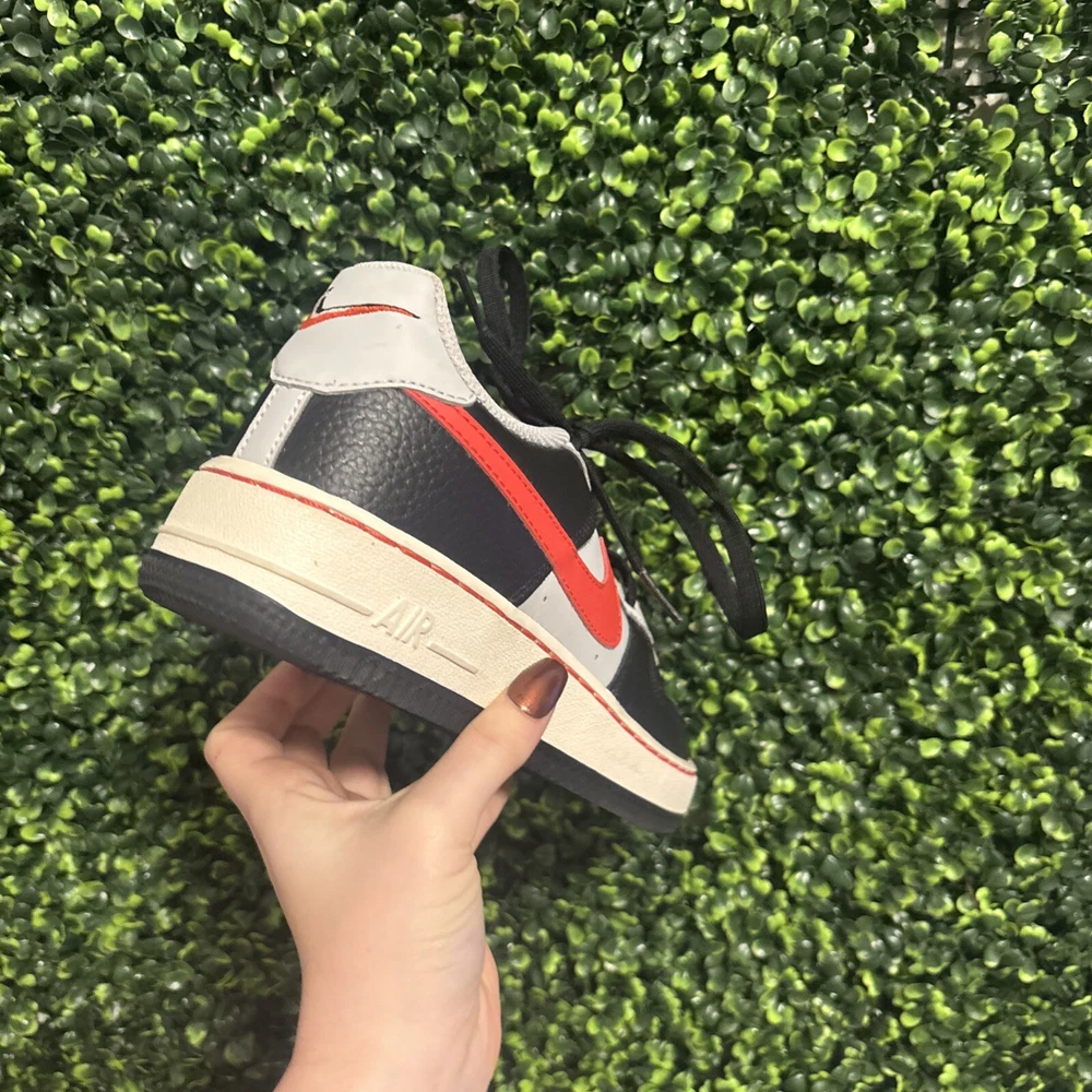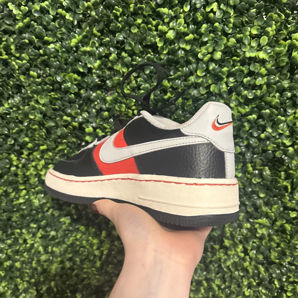 The shoes I am selling are a pair of red black and gray Air Force ones. They have only been worn one time, but are in completely great condition and looking to find a new home.