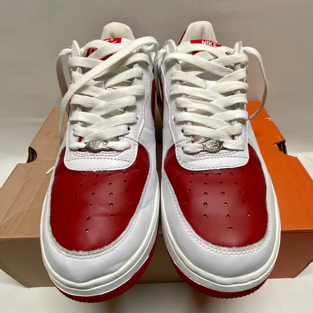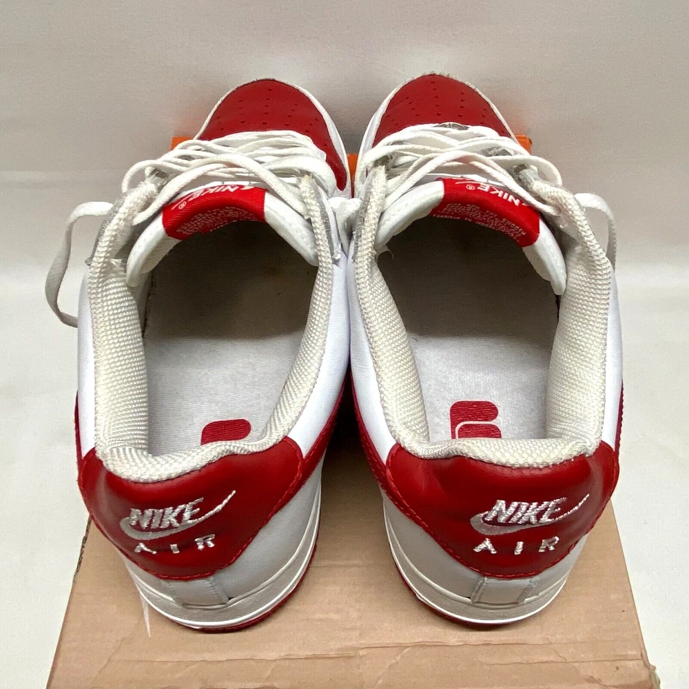 This Nike Air Force 1 sneaker is a rare vintage find from 2003 in a ‘82 white and red toe colorway. It features a lace-up closure, cushioned and breathable design, suitable for casual, work, or activewear. The shoe is a men’s size 10 US (9 UK) with a low-top shaft style and a rubber outsole. Perfect for walking, school, or basketball, these rare limited Y2K edition shoes are a colorful addition to any sports-themed collection. Excellent pre-owned Vintage Condition as shown up close in the listing photos above, with the original box. Came from personal collection with very minimal wear. (There is a small blemish on the right toe, a glue mark from factory on the inside of the left shoe, and a couple black marks on the bottom underneath of the red rubber soles. Otherwise, these Rare Limited Edition 2003 Collectible AF1 shoes are in exceptional condition (Accepting Reasonable Offers) Securely packed and same Day Shipping Thank you for shopping TKO Specialties