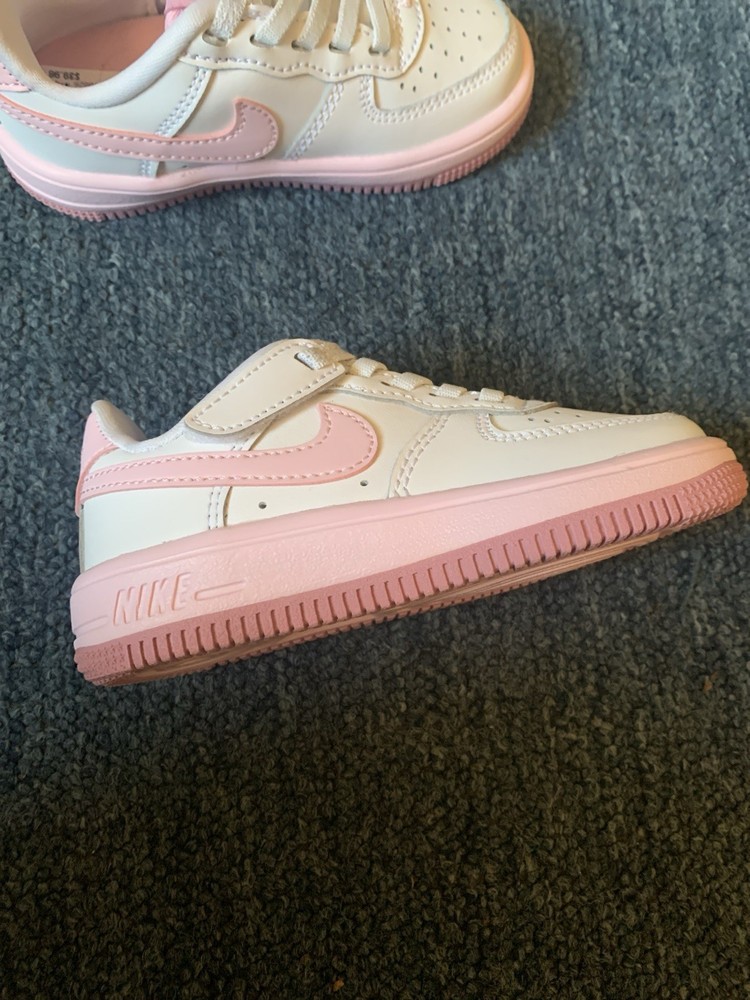 The Nike Air Force 1 "PINK/White" Girls' Toddler 8C shoes are a stylish and comfortable choice for young girls. Featuring a lace-up closure, leather upper material, and rubber outsole, these sneakers offer maximum cushioning for all-day wear. The colorful design with pink accents adds a fun and vibrant touch to the classic Nike Air Force 1 silhouette. Made in India, these athletic shoes are perfect for active toddlers who love to play and explore.