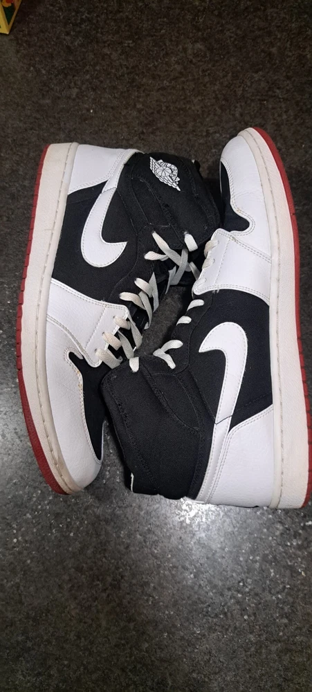 Jordan 1 high strap white black. Back part of strap was cut off. 999999999 sample pair. Very clean for their age only flaw is cut strap. 100% wearable coming from my personal collection.