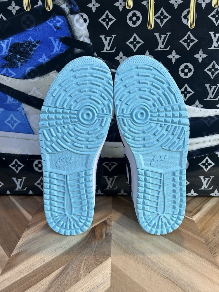 Nike Air Jordan 1 Low Golf White Black Toe UNC Copa sneakers in size 12 for men. These limited edition shoes feature a lace-up closure, cushioned comfort, and a low-top silhouette. The design includes leather uppers in a white and black colorway, with a rubber cleat type suitable for golf. The shoes are part of the Air Jordan product line, embodying a rare and sought-after style influenced by various iconic figures and brands.
