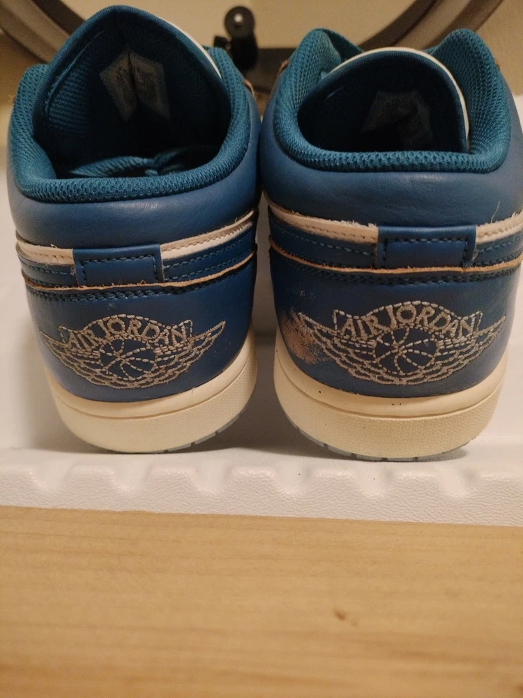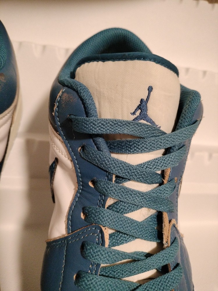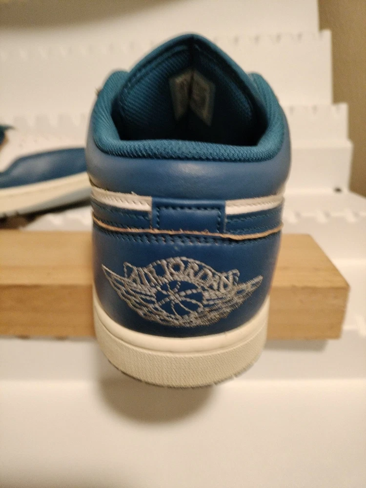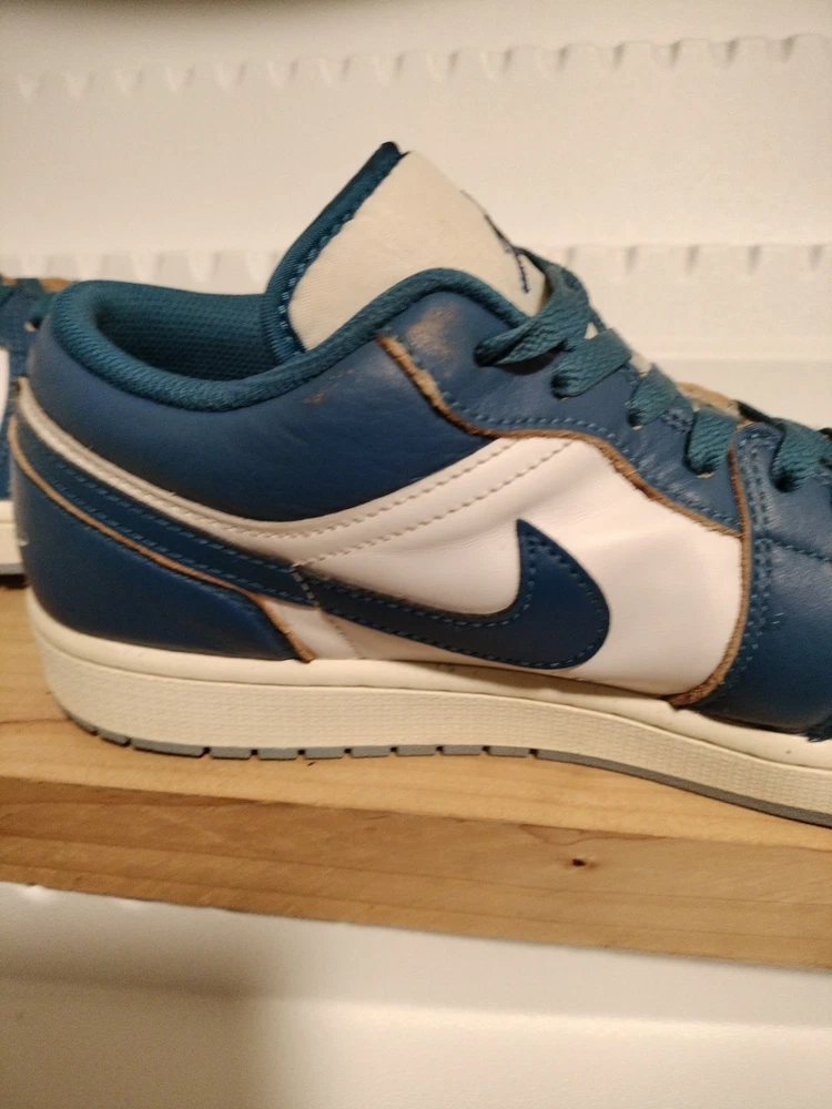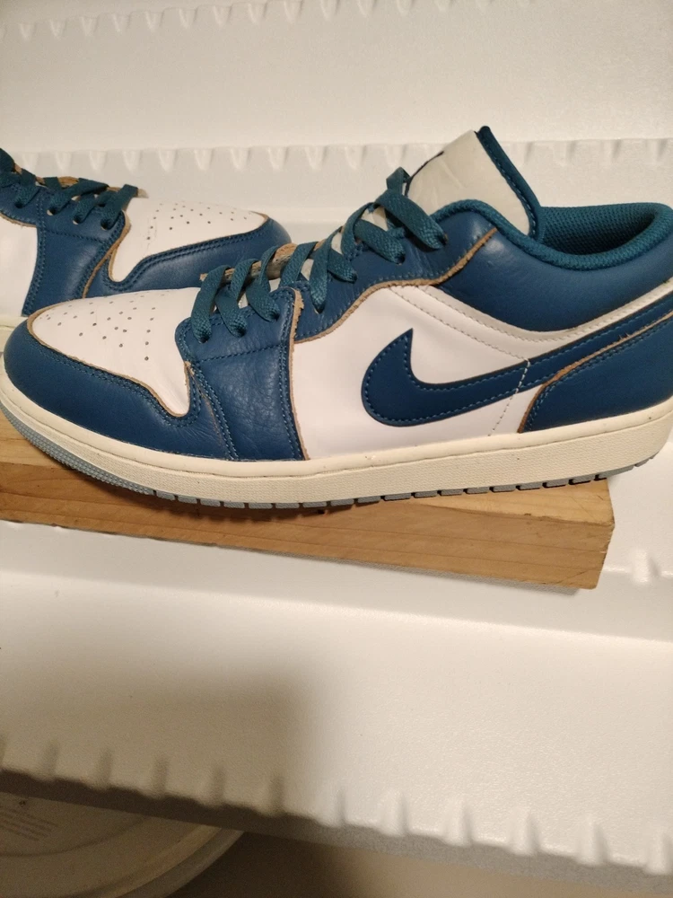 The Nike Air Jordan 1 Low SE Shoes in White Industrial Blue are a stylish and versatile sneaker designed for both activewear and casual occasions. With its lace-up closure and breathable leather upper, these shoes offer comfort and performance. The rubber outsole provides traction, while the cushioned foam insole ensures a comfortable fit. Perfect for basketball, running, cross training, and everyday wear, these sneakers also feature a colorful and vibrant design that is sure to make a statement. Ideal for any season, these Nike Air Jordan 1 Low SE shoes are a must-have addition to any man's wardrobe.