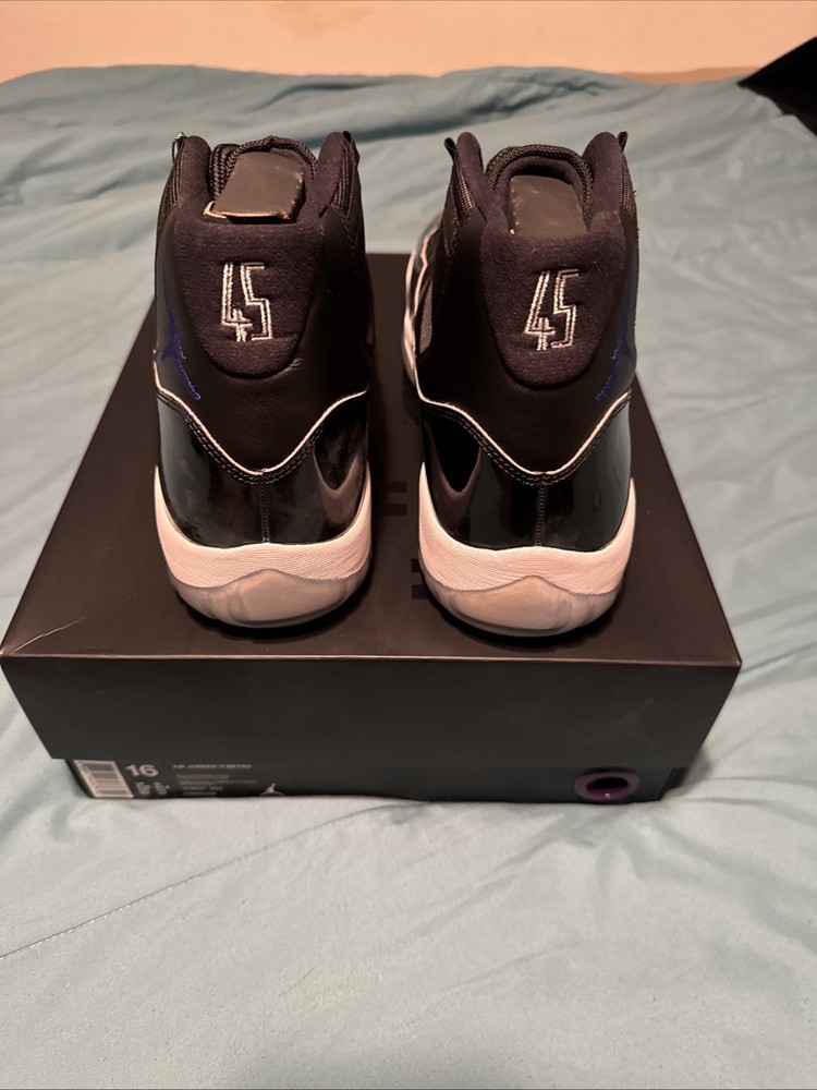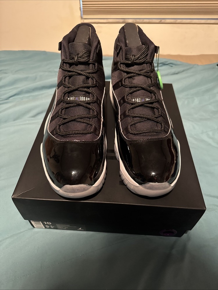 The Nike Air Jordan 11 XI Retro Space Jam 2016 in size 16 is a highly sought-after sneaker that pays homage to the iconic movie Space Jam. This rare size makes it a valuable addition to any athlete or sneaker collector's wardrobe. The black patent leather upper, combined with the Jordan 11 silhouette and retro design, makes it a timeless piece that embodies the performance and style of basketball footwear. With its vintage appeal and limited release in 2016, this Air Jordan 11 is a must-have for those who appreciate the legacy of the brand.