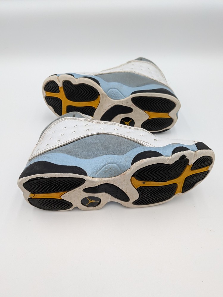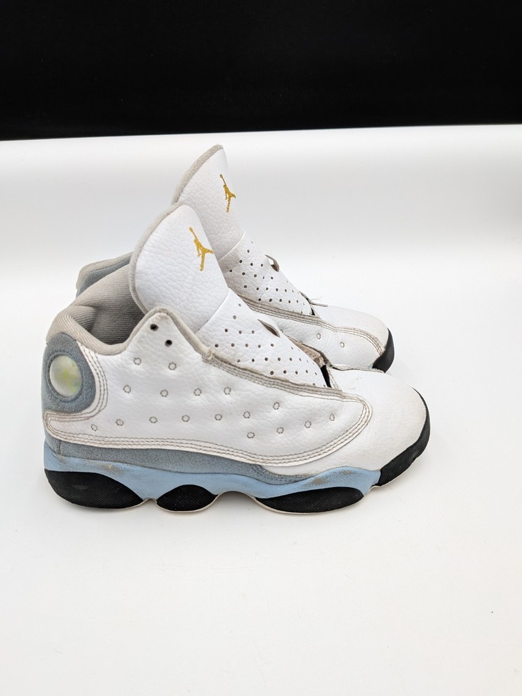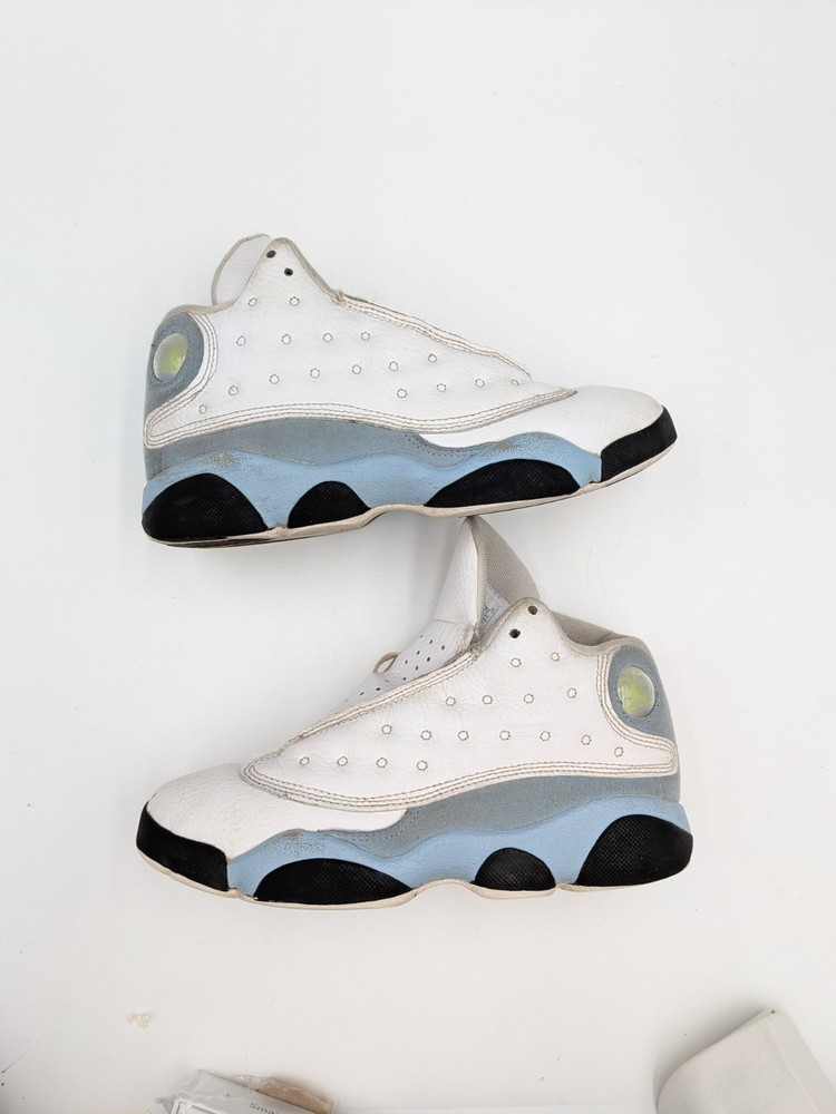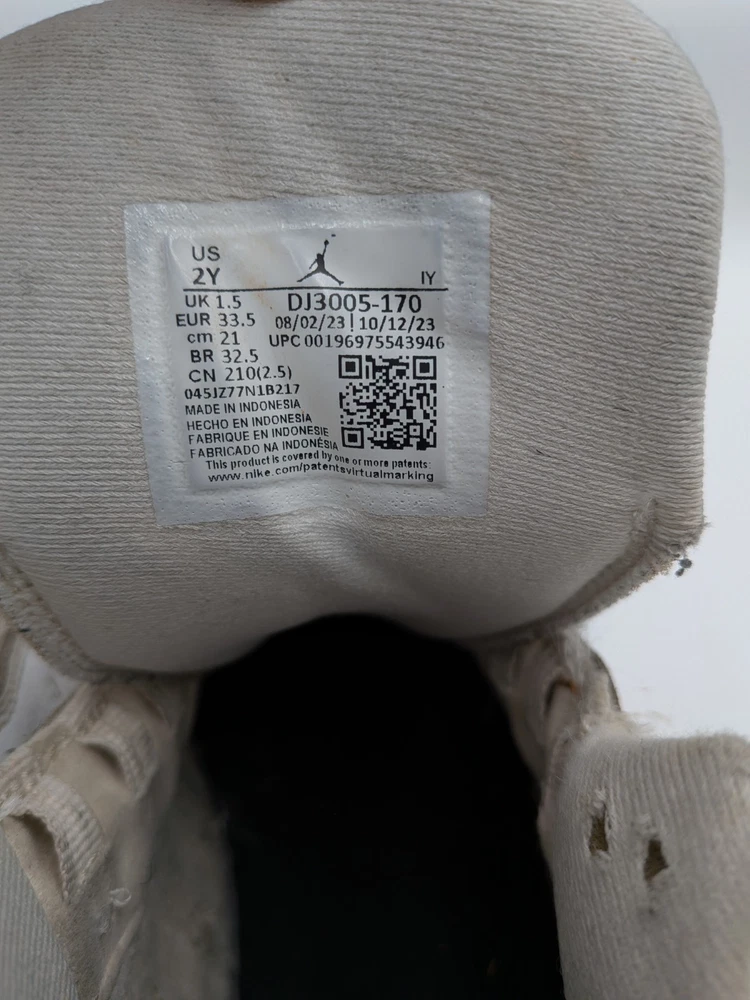 Type: Athletic Color: Gray Occasion: Casual Brand: Nike Toe Shape: Round Toe Fabric Type: Blended Fabric Upper Material: Leather Closure: Lace Up Accents: Logo UK Shoe Size: 2.5 Shoe Width: Standard Handmade: No EU Shoe Size: 35 Season: Spring, Fall, Summer, Winter Pattern: Solid US Shoe Size: 2Y Personalize: No Seller Notes: “No insoles. No Shoestrings.” Product Line: Air Jordan Department: Boys Features: Comfort Vintage: No Cleat Type: Rubber Model: Air Jordan 13 Performance/Activity: Basketball gtin13: Does not apply Outsole Material: Rubber Country of Origin: Indonesia Customized: No Signed: No Insole Material: Foam Shoe Shaft Style: Mid Top Theme: Retro Cushioning Level: Moderate Style: Sneaker UPC: Does not apply