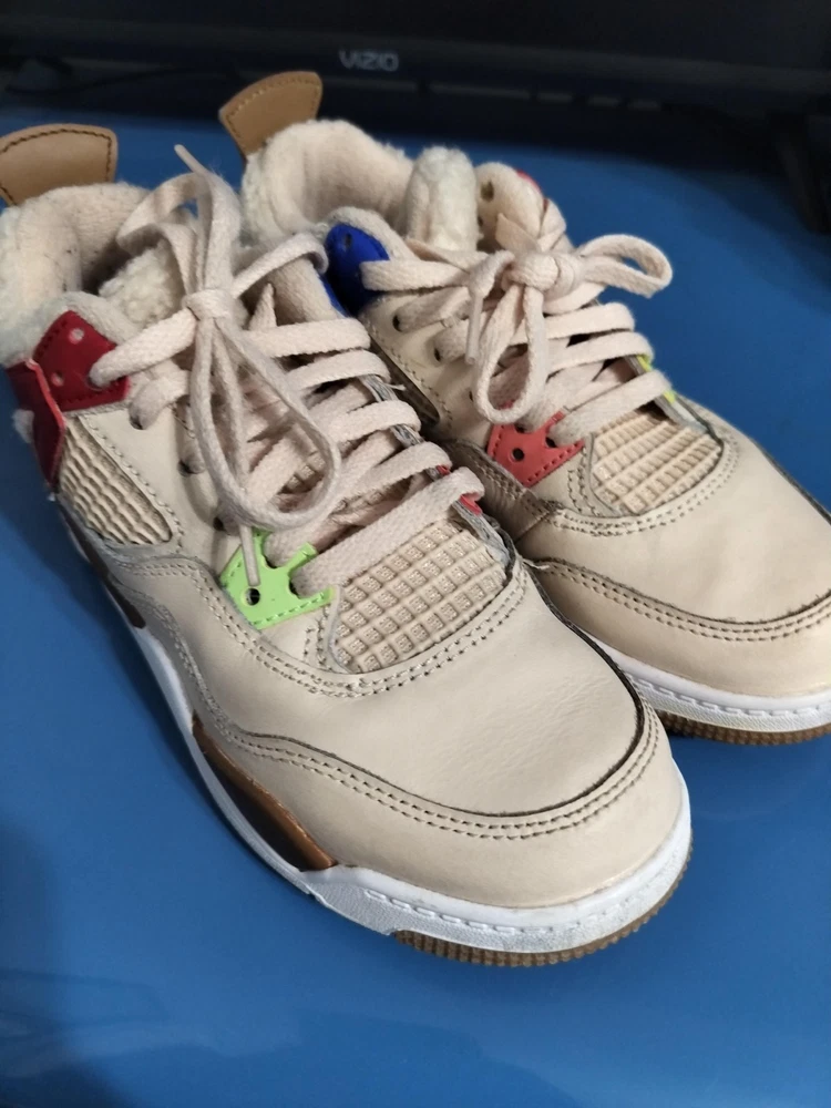 Model: Air Jordan 4 Upper Material: Leather Department: Unisex Kids Brand: Nike US Shoe Size: 1 Exterior Color: Multicolor Type: Athletic Theme: Retro Style: Sneaker Product Line: Nike Air Color: Multicolor