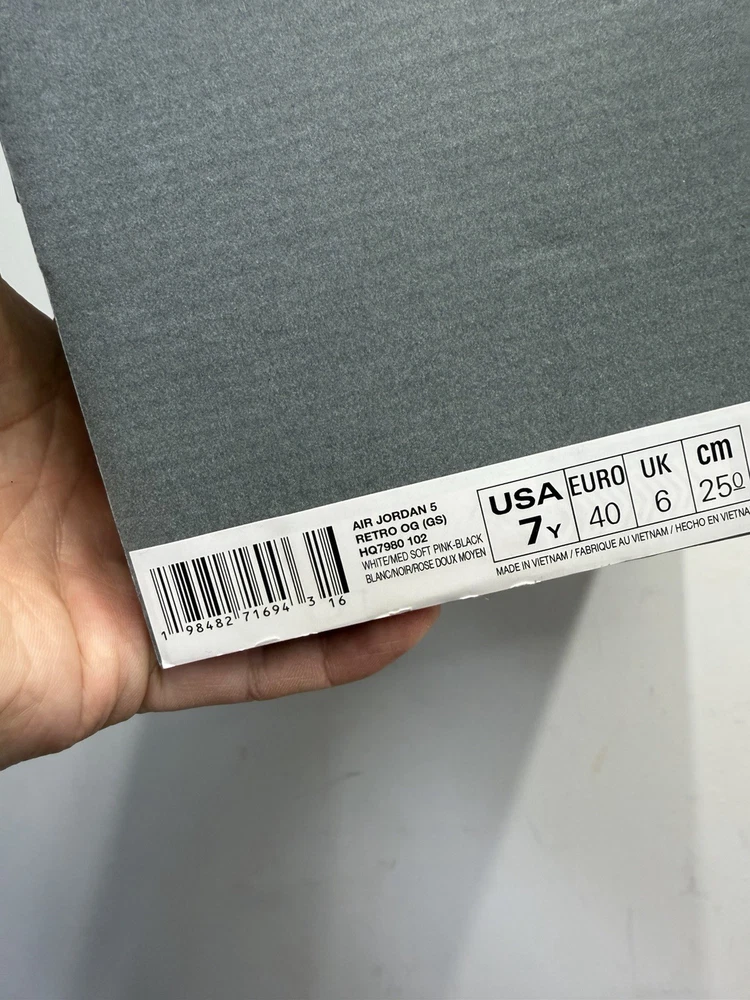 EU Shoe Size:40Model:Air Jordan 5Country of Origin:VietnamColor:PinkProduct Line:Air JordanUS Shoe Size:7UPC:Does not applyStyle Code:HQ7980-102Brand:NikeCustomized:NoTheme:RetroUK Shoe Size:6Style:SneakerDepartment:TeensType:Athleticgtin13:Does not apply
