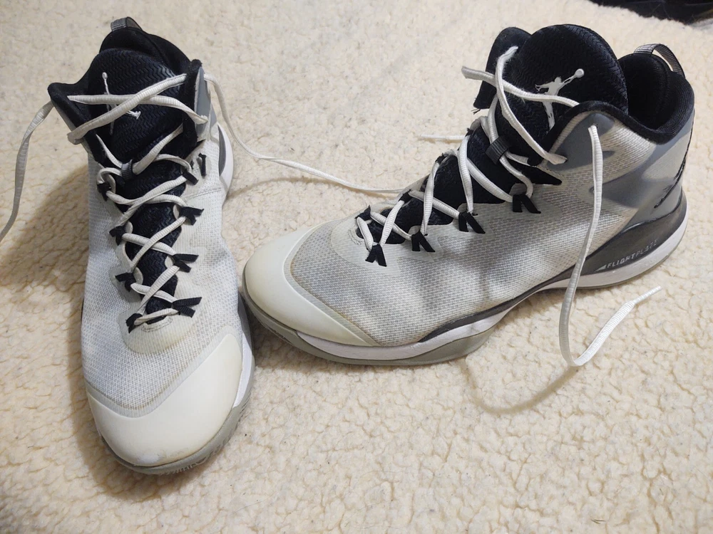 Nike Air Jordan Super Fly 3 Sneakers (inv23) White/Black/Gray, Size 10.5 Used but well cared for. Normal wear on soles and some very light soil marks - see pictures No holes, no tears. Overall in really good condition! From a smoke free home. Please note Iowa buyers have sales tax.
