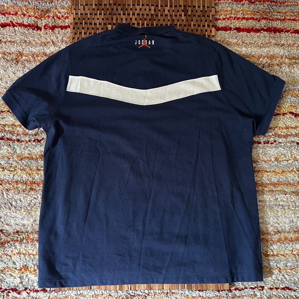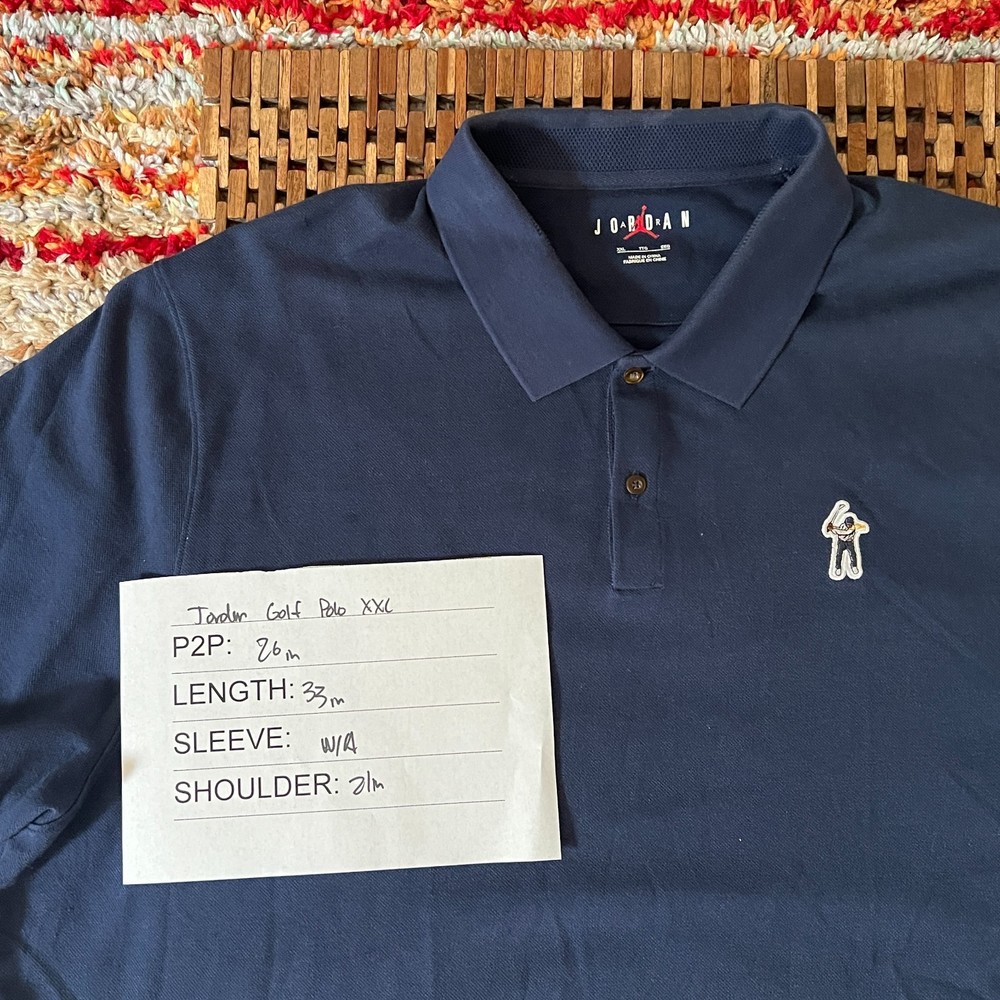 This Nike Air Jordan Gold Chain Golf Logo Polo Shirt in blue is a stylish and versatile addition to any man's wardrobe. Made of comfortable cotton material, this short-sleeve polo features a collared neckline, button closure, and a solid pattern. The iconic Nike logo adds a touch of sporty flair, perfect for casual occasions in the summer, fall, or spring. The size XXL 2XL ensures a comfortable fit for those looking for a relaxed and fashionable style.
