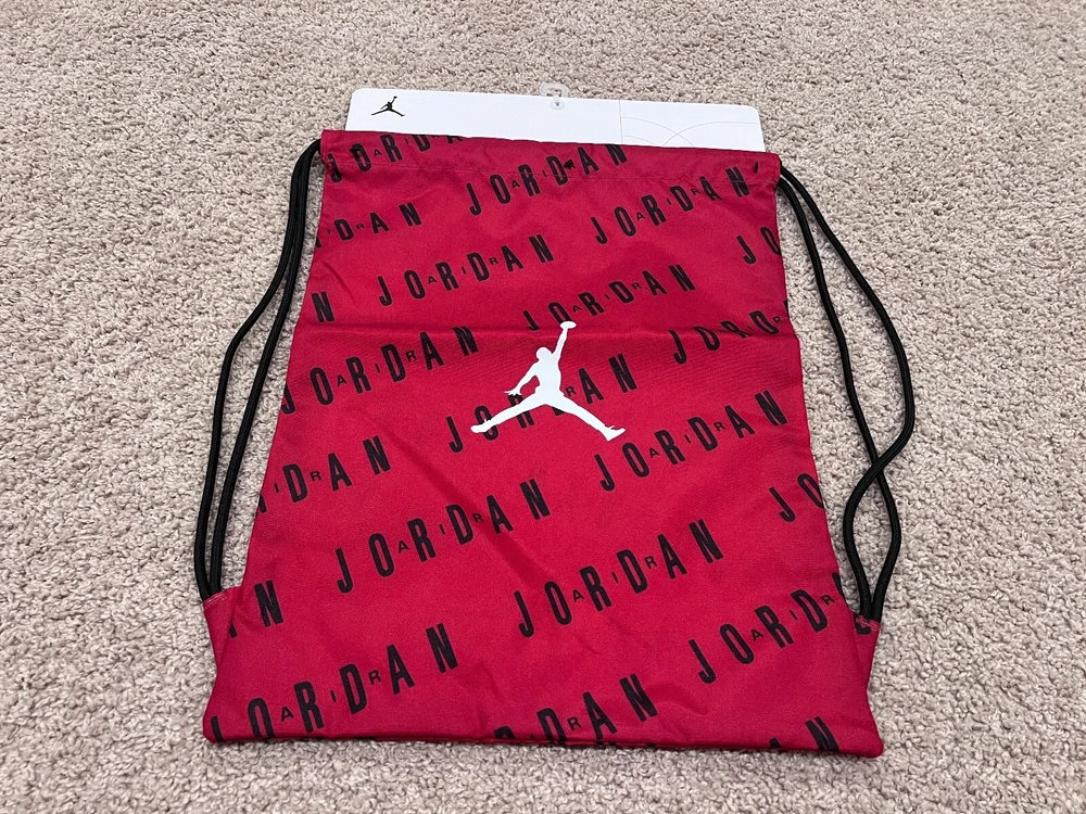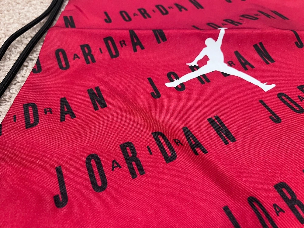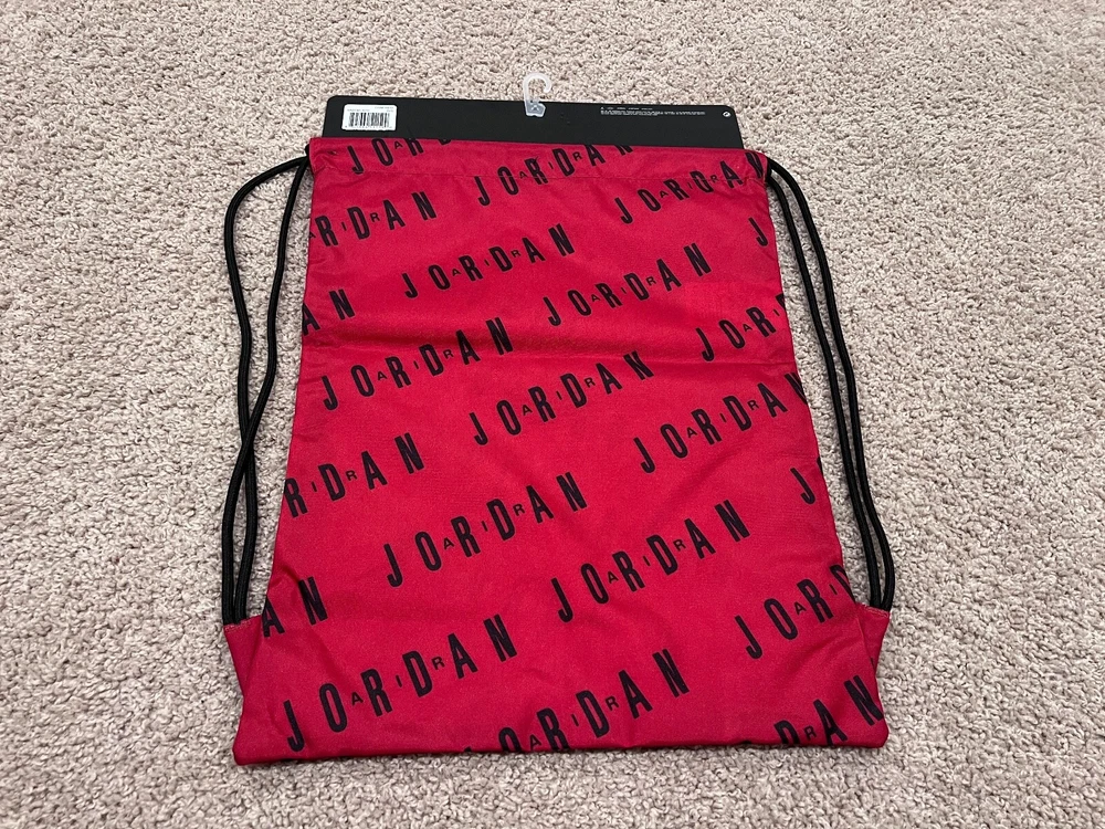 Jordan string bag. I guarantee this item is 100% authentic. Nike Air Jordan string bag. Classic Chicago Bulls color combination. Retro themed item. 13.75" x 18" 100% Polyester Buy it now, or send your offers. All offers will be considered!! Please check out my other items... https://www.ebay.com/sch/i.html?item=394915361104&rt=nc&_trksid=p4429486.m3561.l170197&_ssn=regalencounters