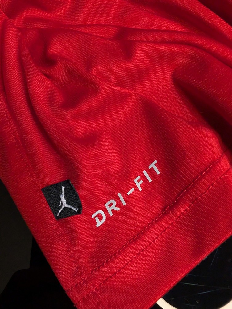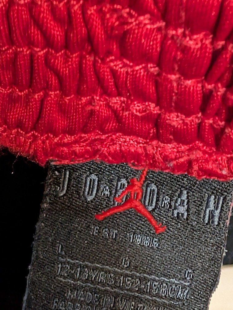The Nike Air Jordan Shorts are designed for young boys in size Large (12-13yr), featuring a vibrant red color and athletic fit for optimal performance during sports activities. Made by the renowned brand Jordan, these shorts are perfect for basketball, football, jogging, and training, making them a versatile addition to any active youth's wardrobe. With a waist size of 24 inches and an inseam of 8 inches, these shorts offer both comfort and style for young athletes on the go.