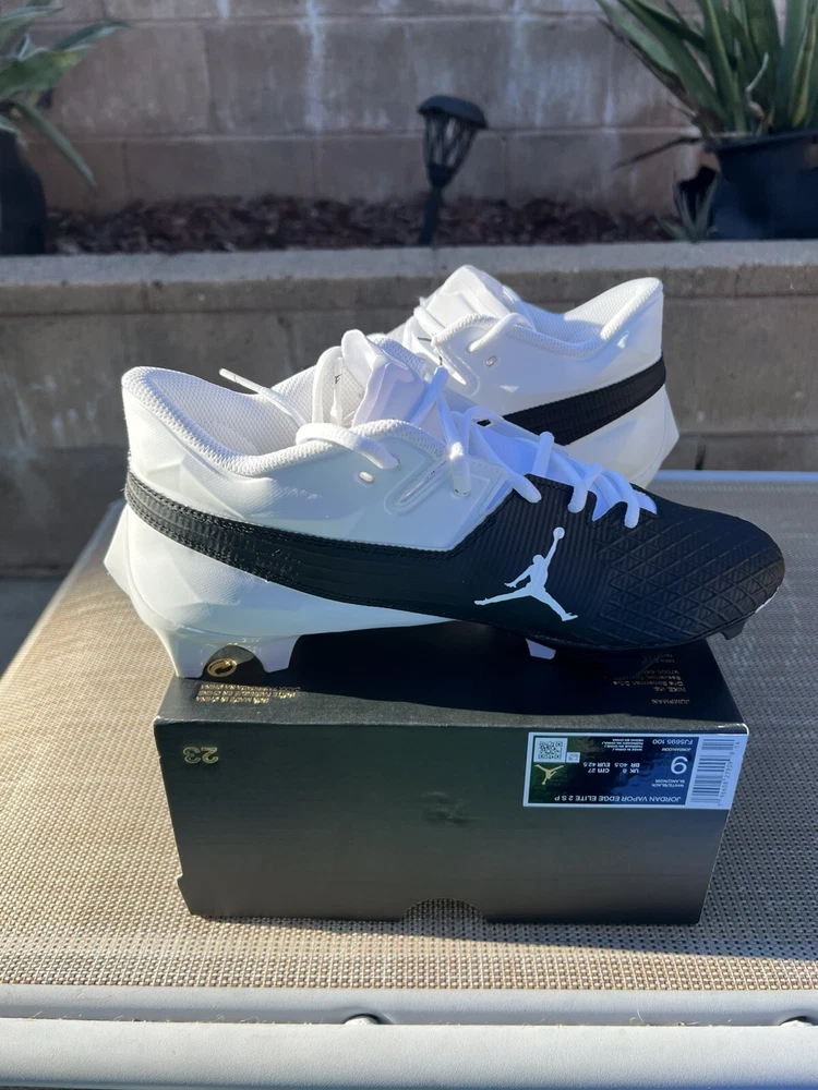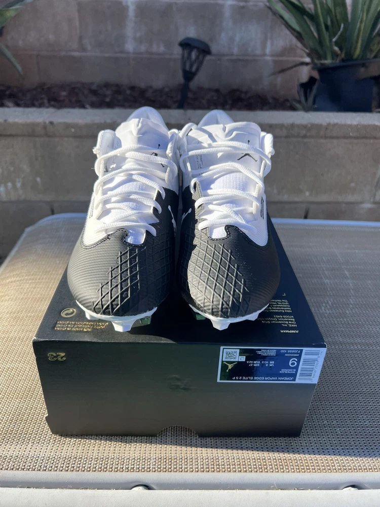Nike Air Jordan Vapor Edge Elite 2 S P White Black "Football" Size 9 FJ5695-100. Box missing lid.