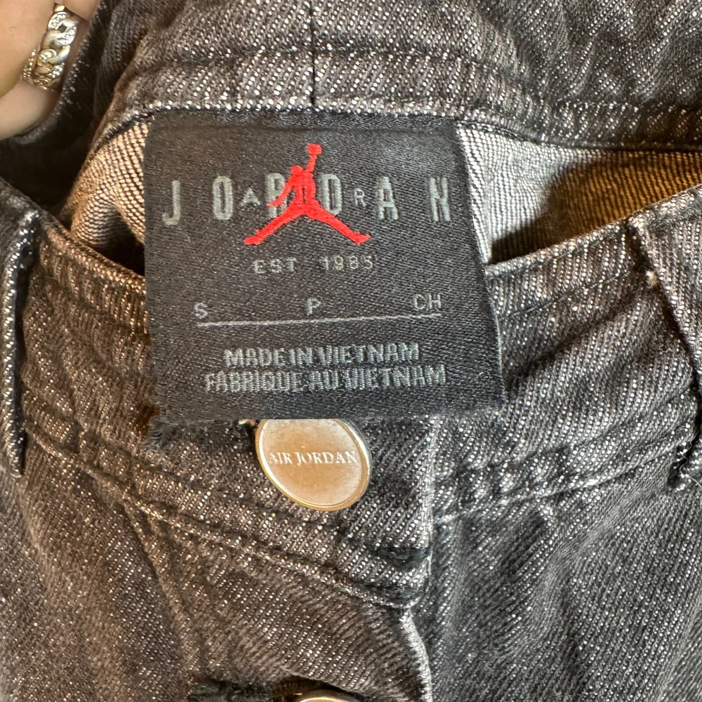 Brand: Nike Air Jordan Size: Small Features: Button Front Front Slit Back Patch Logo Midi Length 100% Cotton Vintage Black Denim Wash Condition: Preowned excellent condition. No rips/stains/holes Approximate Measurements pictured in the last photo. Please compare these to similiar items you own to ensure proper fit. Preowned items are cleaned to industry standards. They may have smell of detergent/fabric softener All new items may be stored with preowned items that have been washed or have a scent. New items may have a scent of other items/detergent *Items stored in a non smoking environment but pet friendly home