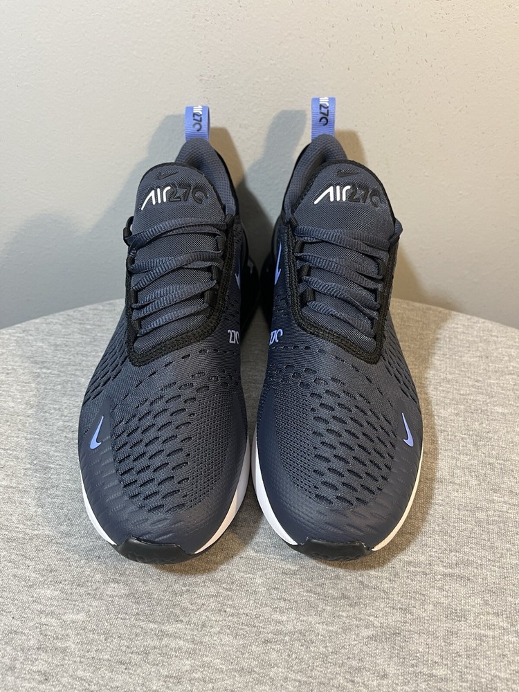 NIKE AIR MAX 270 THUNDER BLUE/BLACK/WHITE/ROYAL PULSE Shoe SIZE Youth 7 & Women's 8.5 943345 408 New with no box. We always carefully package and ship right away. Reach out with any questions. Youth 7 & Women's 8.5 The pair in our photos is the exact pair you are purchasing. Make sure to follow us. We post shoes often and offer bundle pricing.